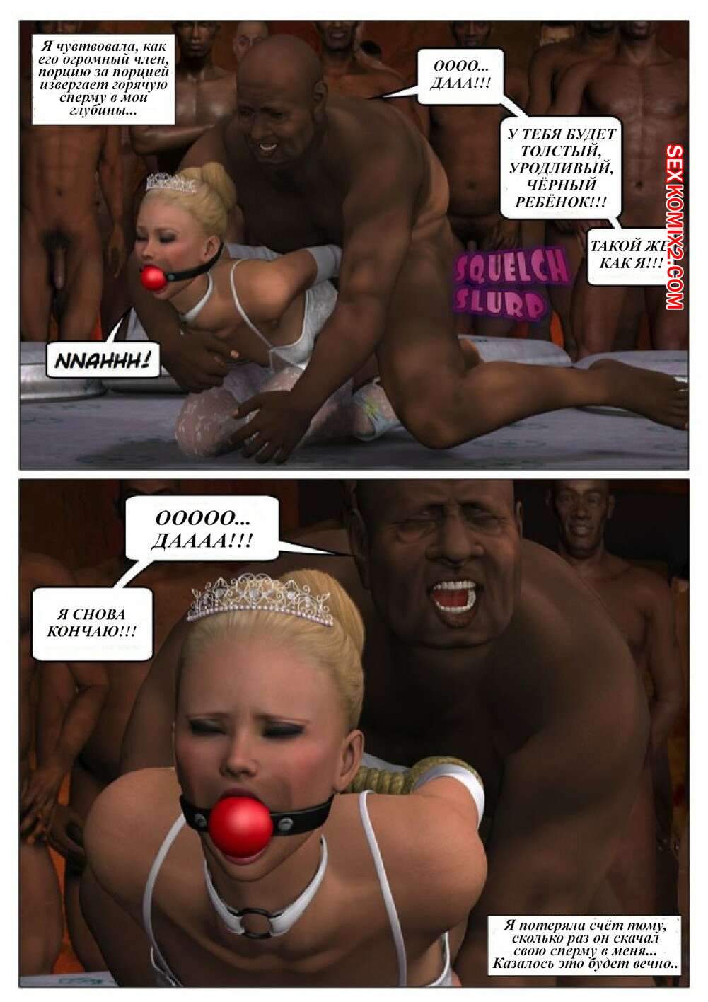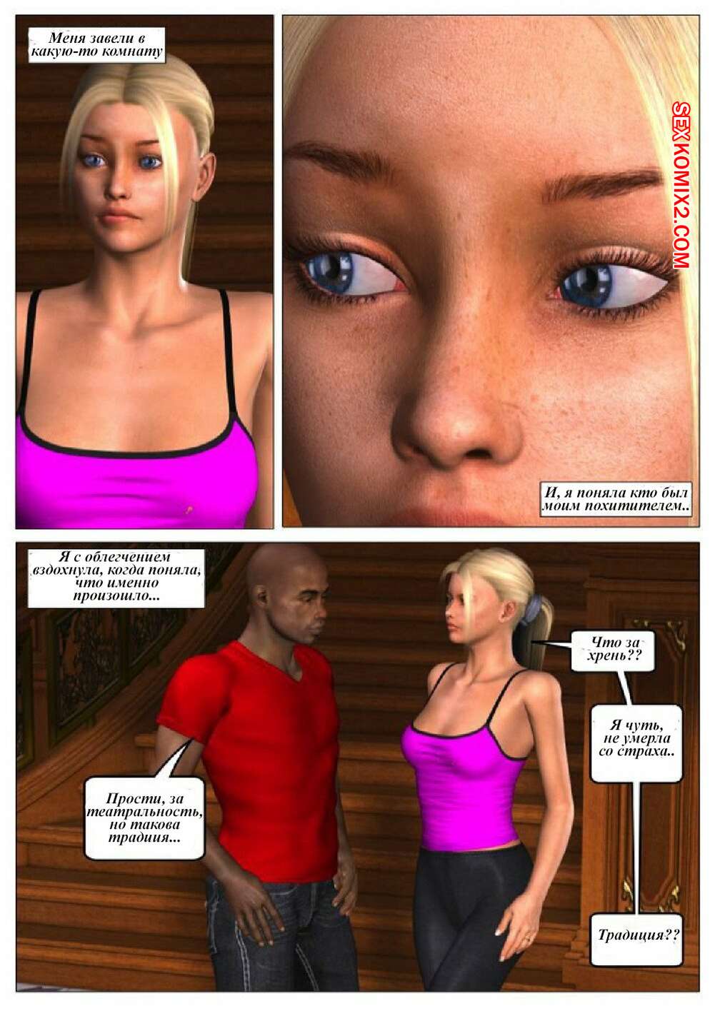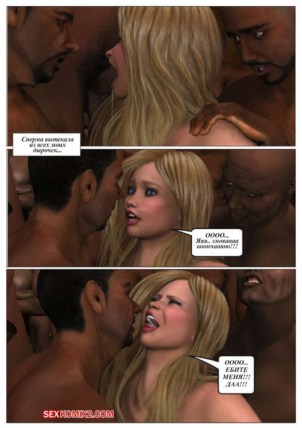 Порно комикс 50 оттенков чёрного. Часть 7 Сисястая красотка блондинка оказалась в клубе с черными парнями. Девушка возбудила парней своим шикарным телом в белом белье и они сразу дали красотке отсосать свои большие хуи, после чего хорошенько ее выебали.