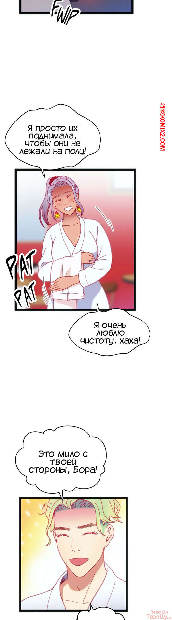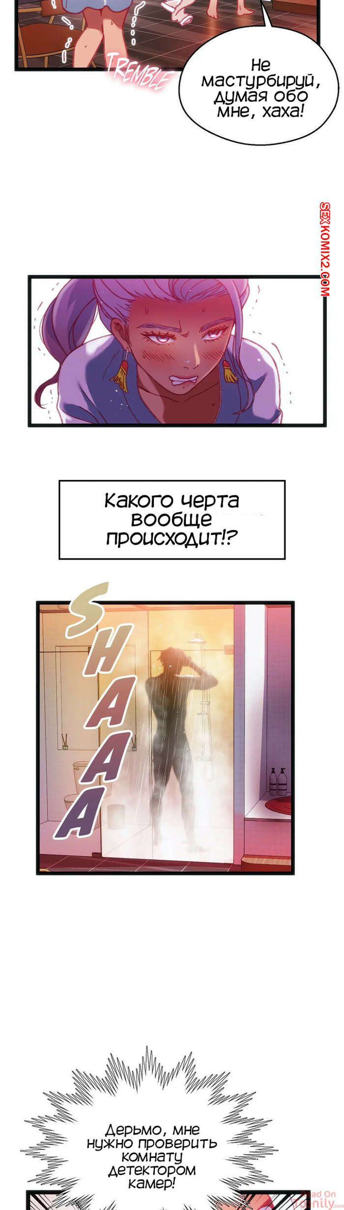 Порно комикс Игра с телом. Часть 28. The Body Game Бора вышла из душа и пока Досунг мылся, она стала осматривать его штаны и искать камеру. Парень пронюхал, что она чтото заподозрила, поэтому решил как следует ее проучить.