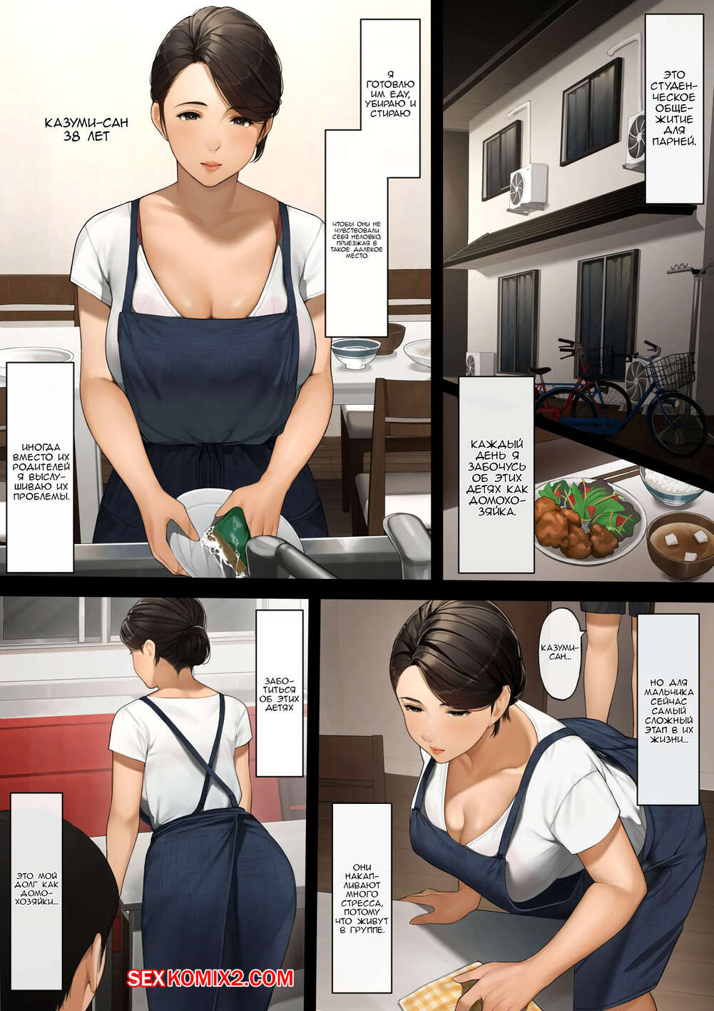 Порно комикс Наша общежитие мама. Bokura No Ryoubo San. Zenpen Сисястая милфа брюнетка решила повеселиться с несколькими молодыми парнями. Она разделась перед ними и стала сосать их большие хуи, после чего дала им себя хорошенько выебать.