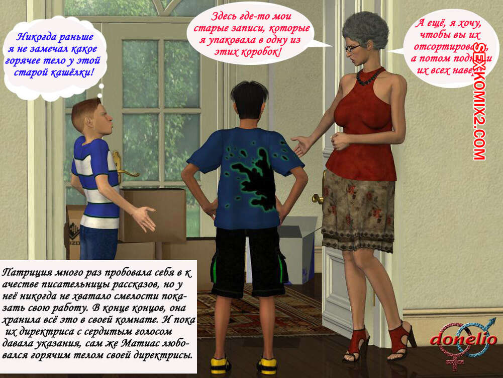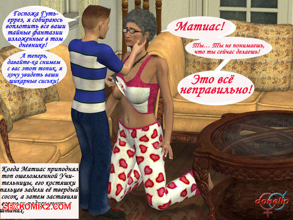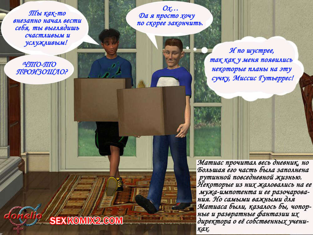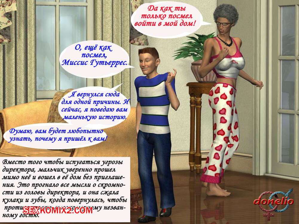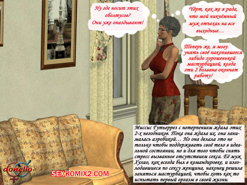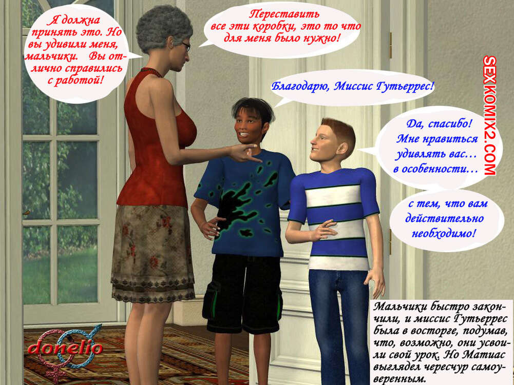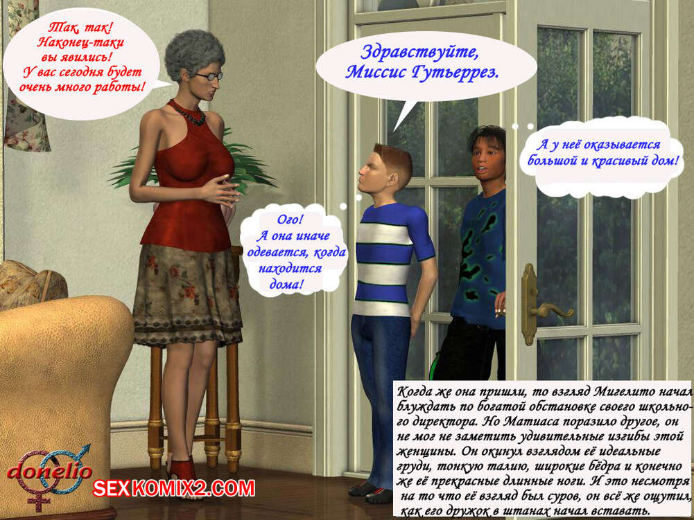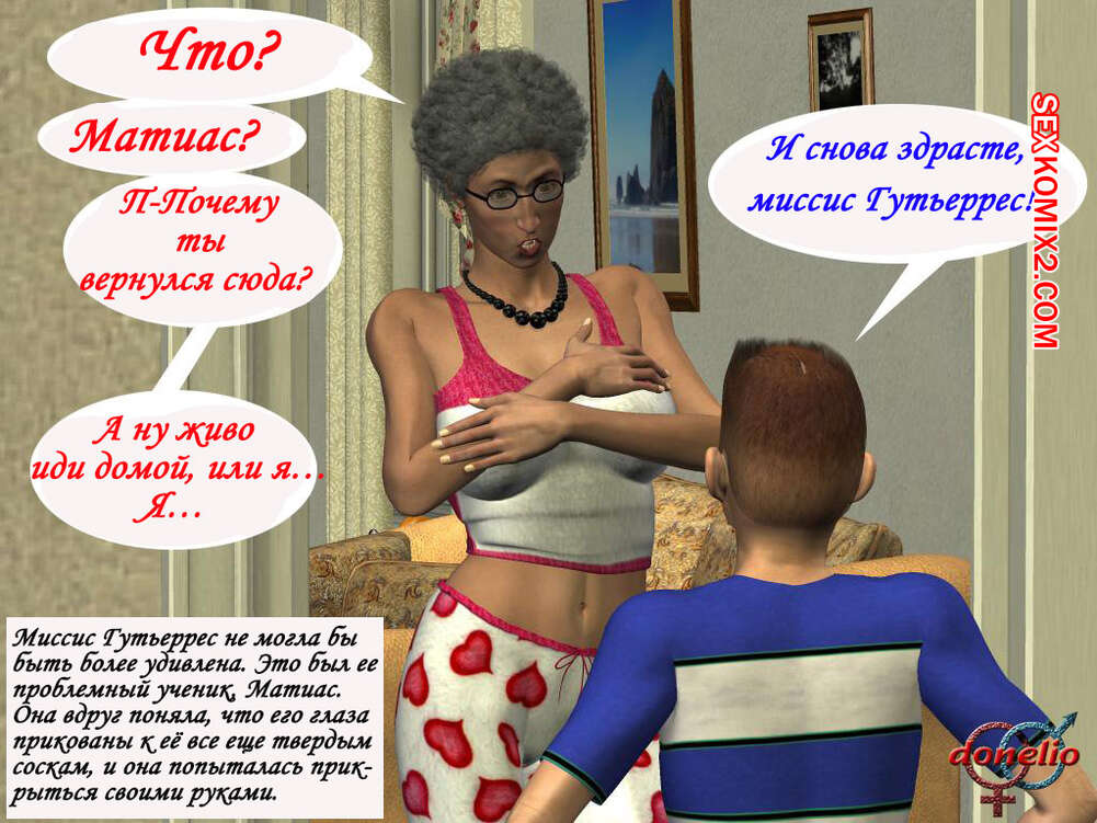 Порно комикс Миссис Гутьеррез. Mrs Gutierrez Молодой парнишка попал сисястой милфе перенести вещи, после чего она решила его отблагодарить и повеселиться с ним. Сучка разделась и стала сосать его большой хуй, после чего дала ему себя выебать.