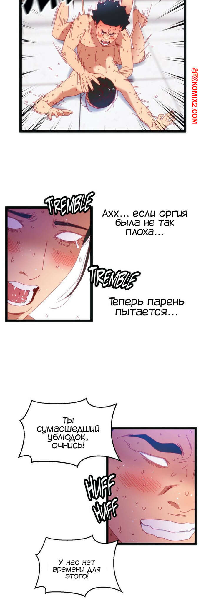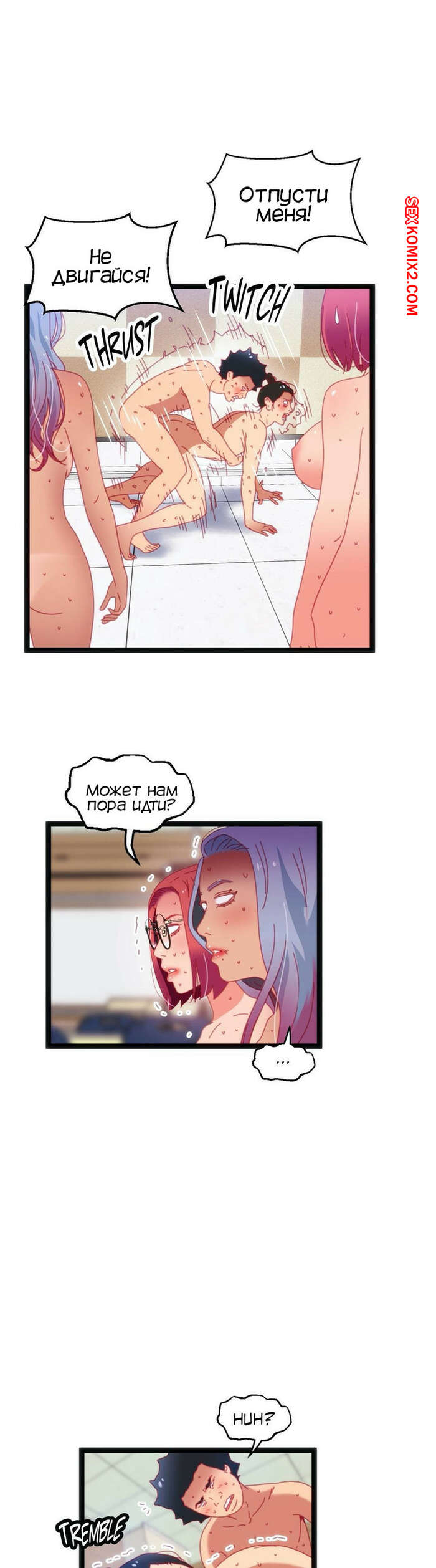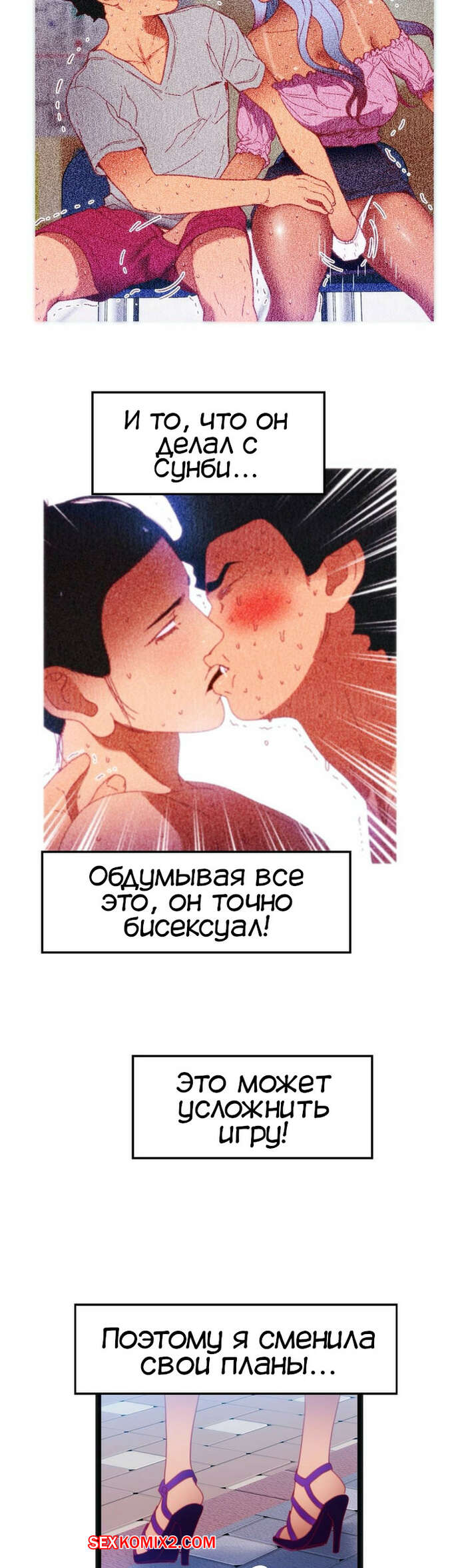 Порно комикс Игра с телом. Части 35 и 36. The Body Game Дачу понял, что ему не выгодно просто сидеть в шкафу и наблюдать за еблей красотки с Сунби. Он выскочил к ним и предложил им всем вместе занять групповухой.