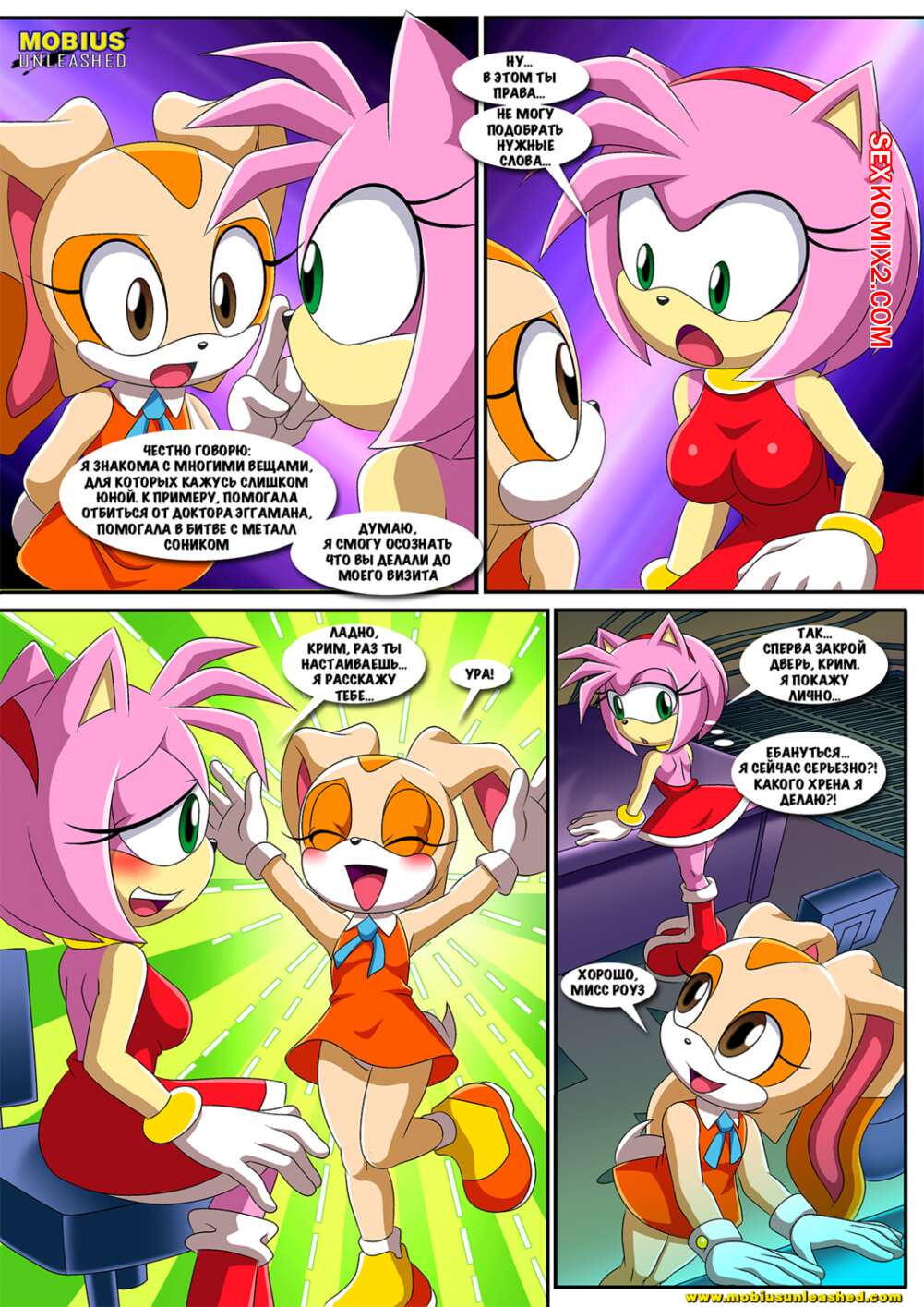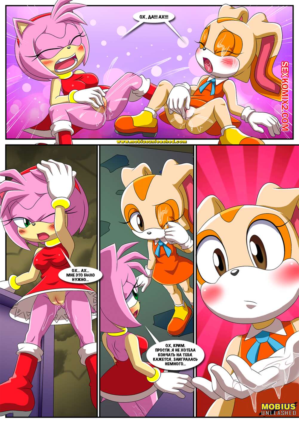 Порно комикс Безумный вирус соблазна. Часть 2. Соник Горячие подружки Соника заразились вирусом и теперь чертовски возбуждены. Они решили повеселиться вдвоем, поэтому разделись на кровати и занялись лесбийской еблей.