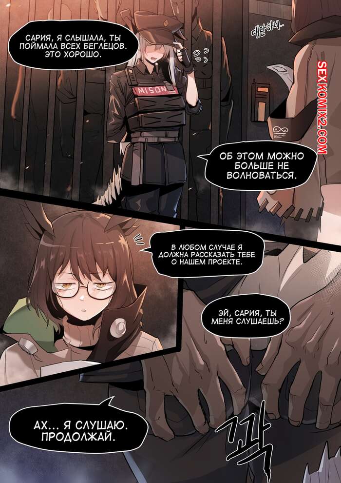 Порно комикс Saria. Arknights Горячую сисястую блондинку держат в плену и два парня решили повеселиться с горячей блондинкой. Они раздели ее и дали ей отсосать свои большие хуи, после чего выебали ее во все дырочки.