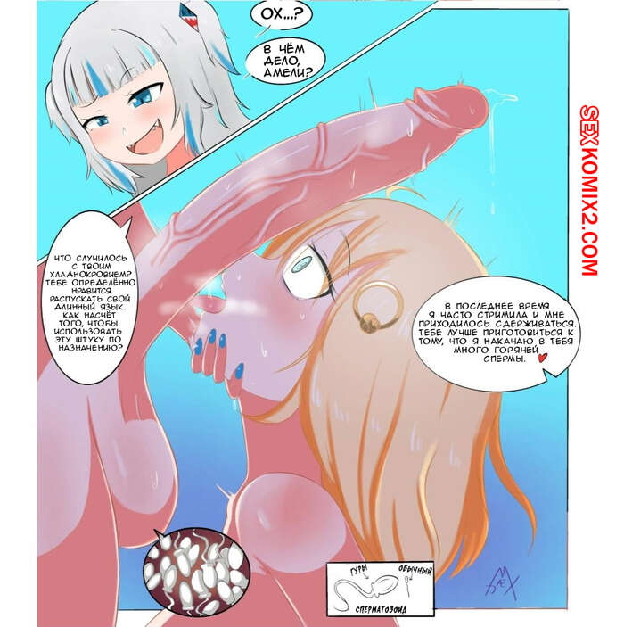 Порно комикс Гаур Гура и Ватсон Амелия. Gawr gura and Watson amelia Горячая сисястая блондинка решила повеселиться со своей подругой с большим хуем. Она встала перед ней на колени и отсосала у нее, после чего дала ей себя выебать и кончить в нее.