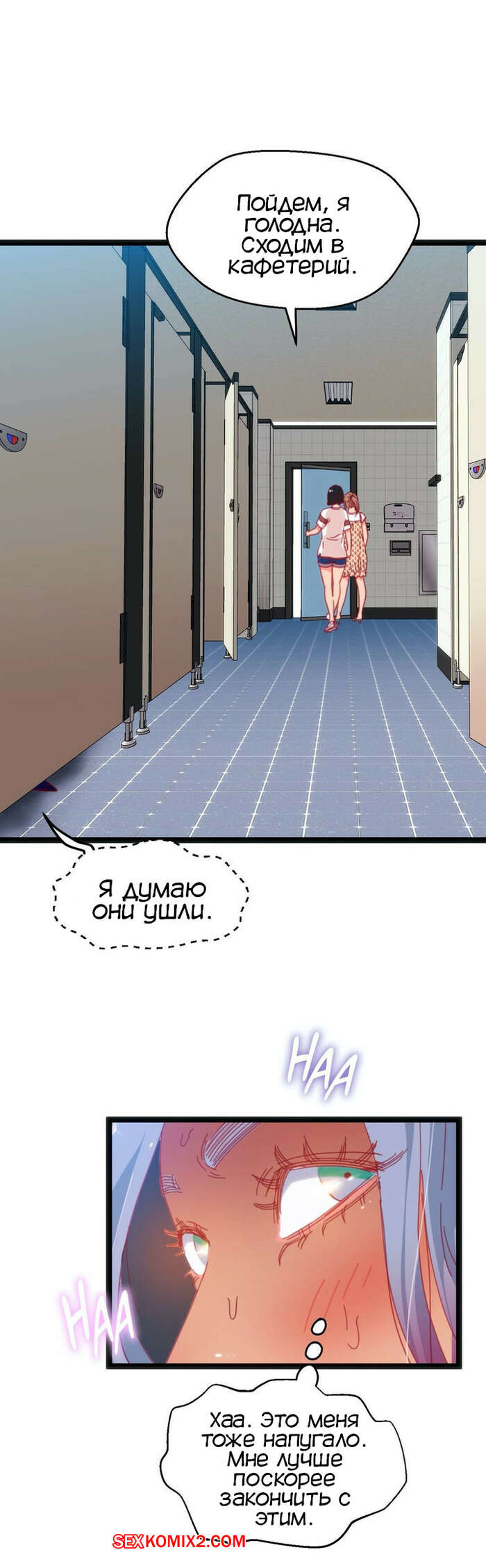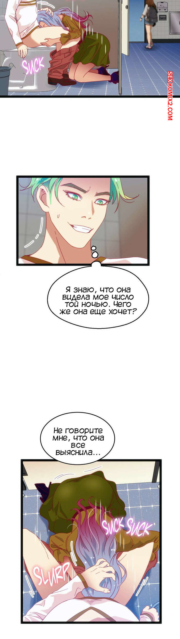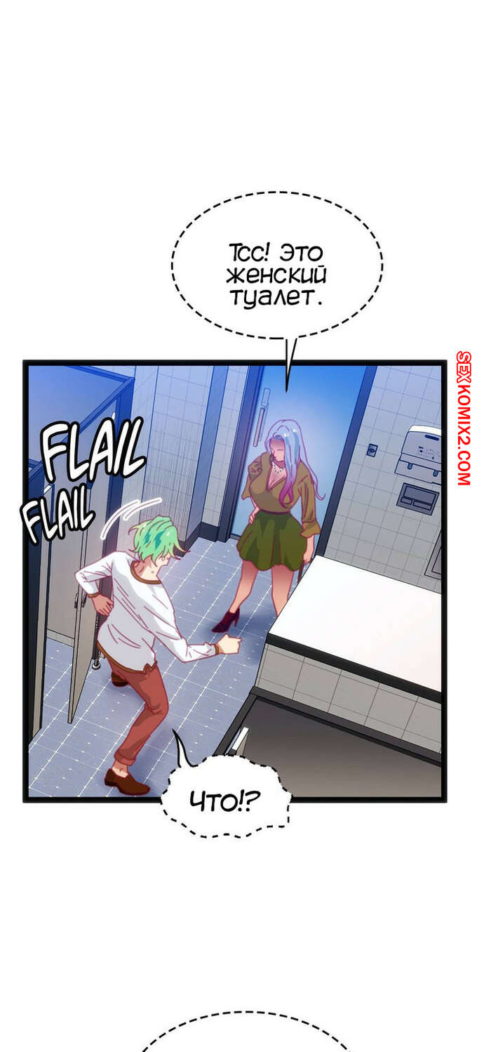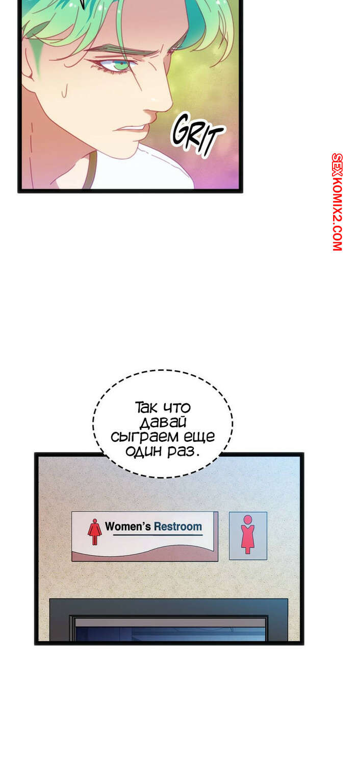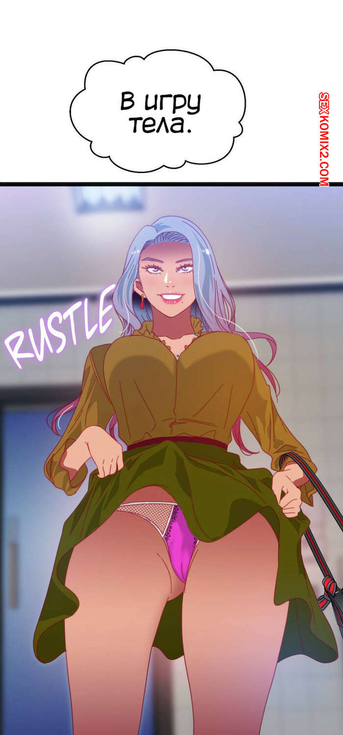 Порно комикс Игра с телом. Часть 46. The Body Game Сисястая блондинка затащила парня в женский туалет и стала ему угрожать, что испортит его жизнь, если он не останется. Сучка разделась и стала сосать его большой хуй, после чего стала его трахать.