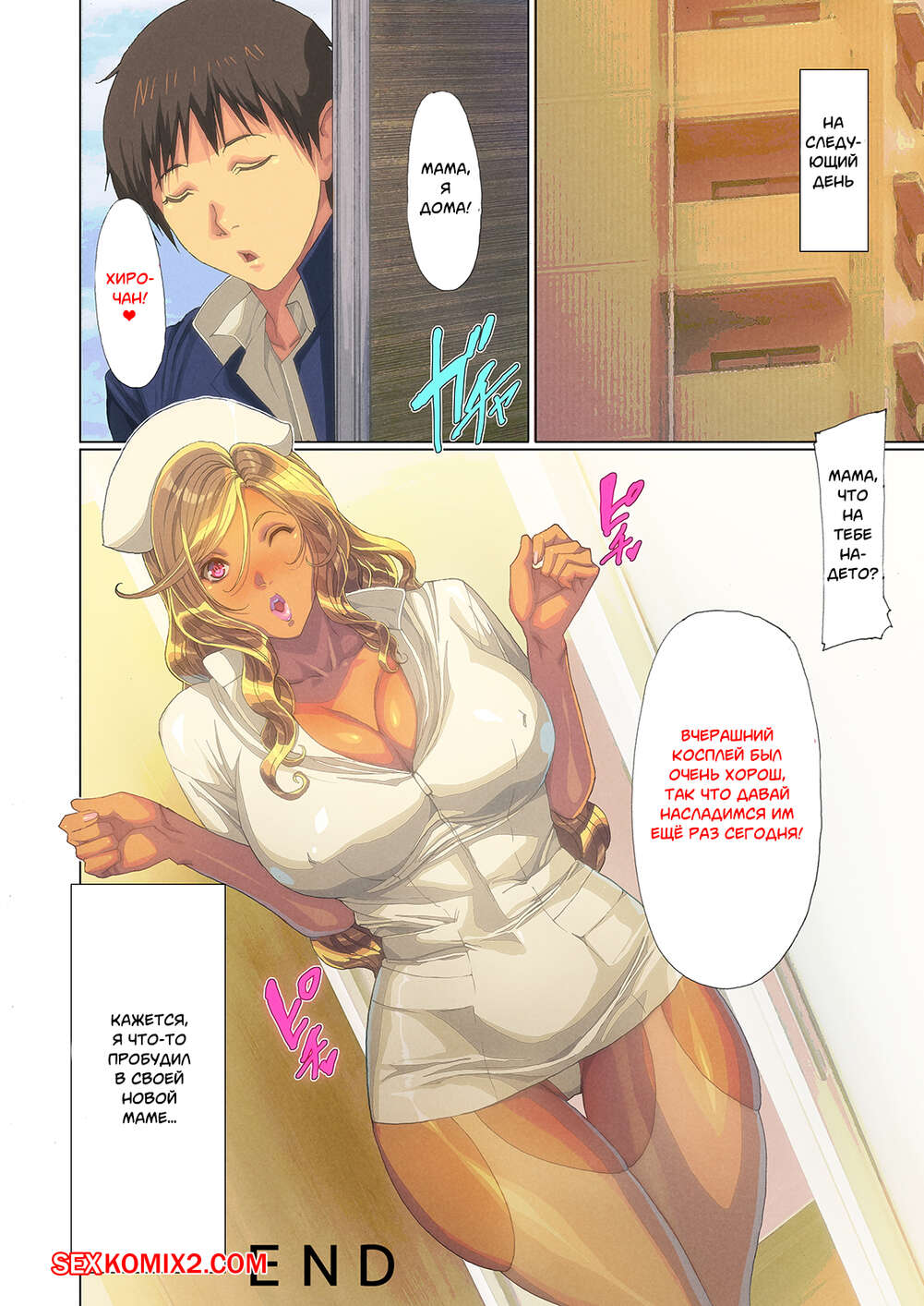 Порно комикс Мама Гяру появилась в моём доме. Части 1 и 2. A Gyaru Mom Showed Up at My House Сисястая милфа блондинка давно не трахалась, поэтому она решила повеселиться с молодым парнем. Сучка возбудила его своим шикарным телом и стала сосать его большой хуй, после чего дала ему себя выебать.