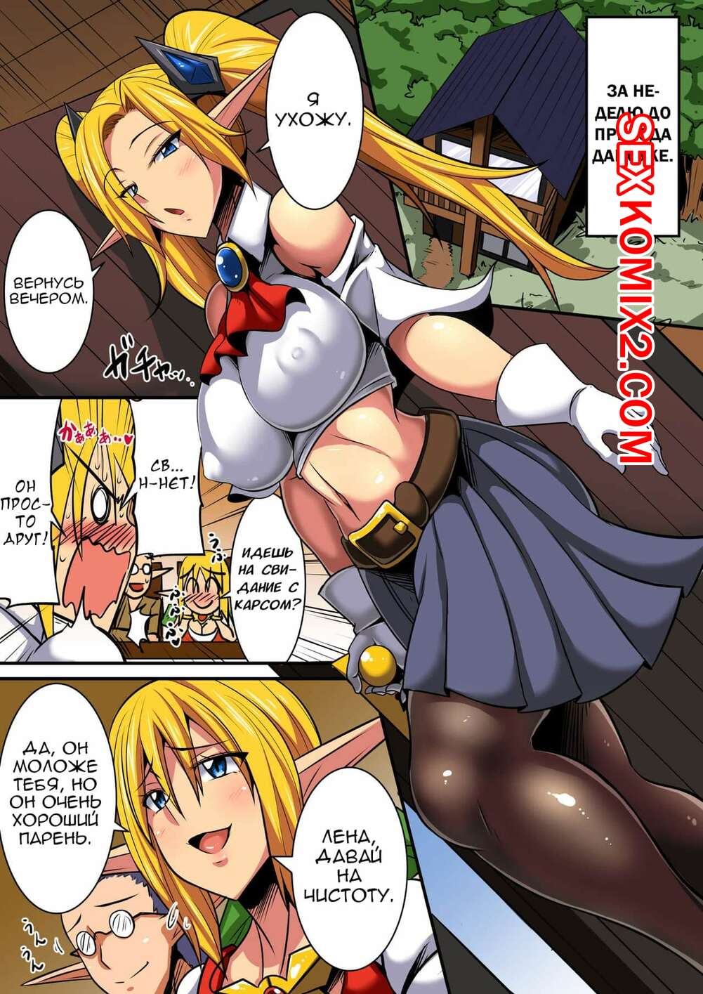 Порно комикс Межкультурный обмен. Часть 2 Горячая сисястая красотка блондинка очень возбуждена и хочет трахаться. Она раздевается перед своим дружком и сосет его большой хуй, после чего дает ему себя хорошенько выебать.