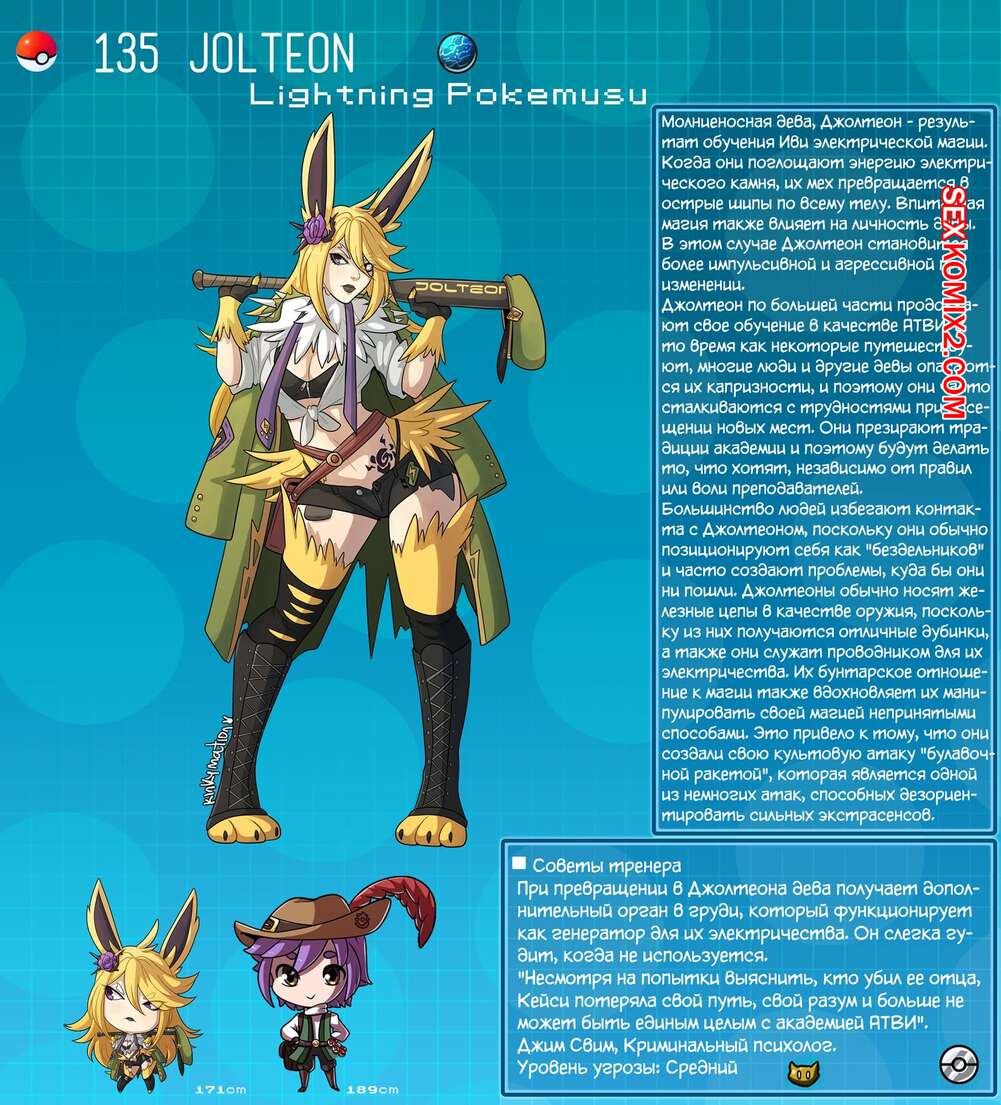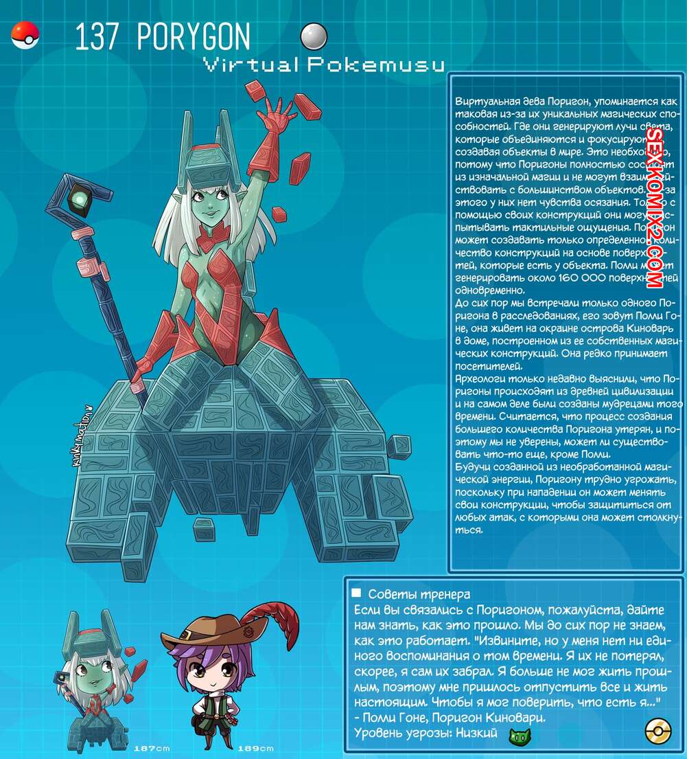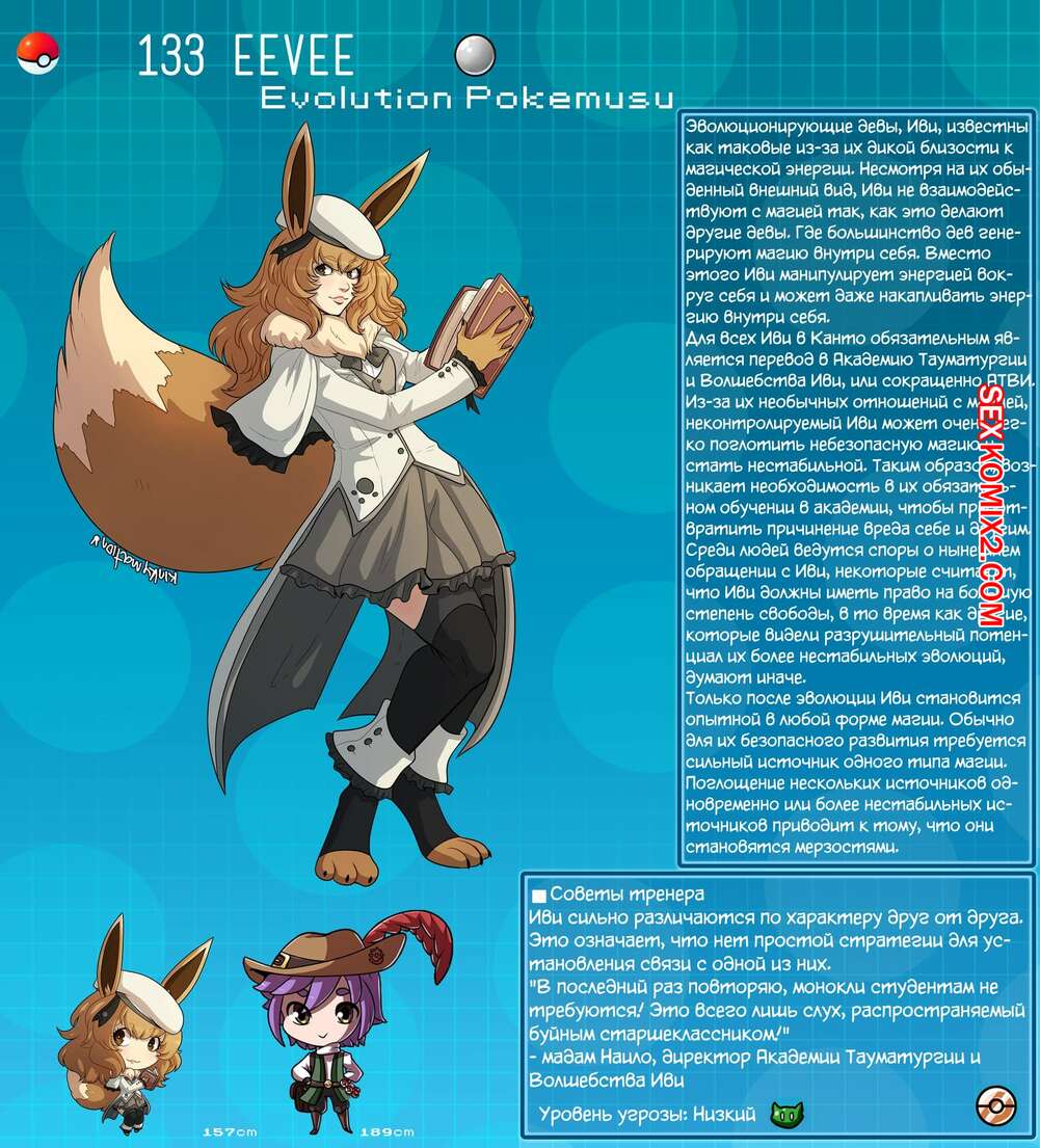 Порно комикс Покедекс по девушкам покемонам. Часть 9. Kinkymation Подборка артов и с горячими сисястыми красотками покемонами. Нам сперва представляют сводку по девушкам, после чего они демонстрируют как классно они трахаются.