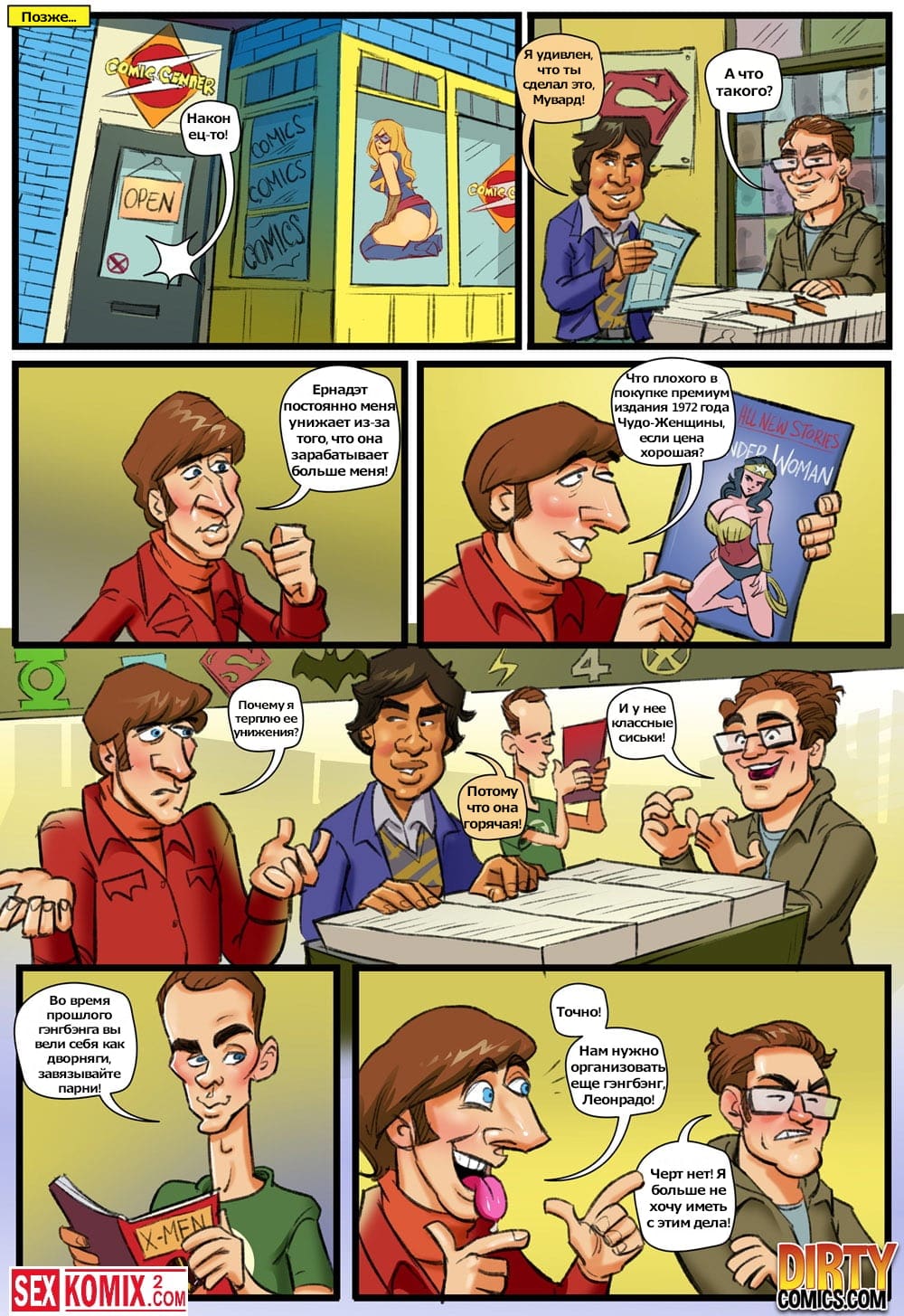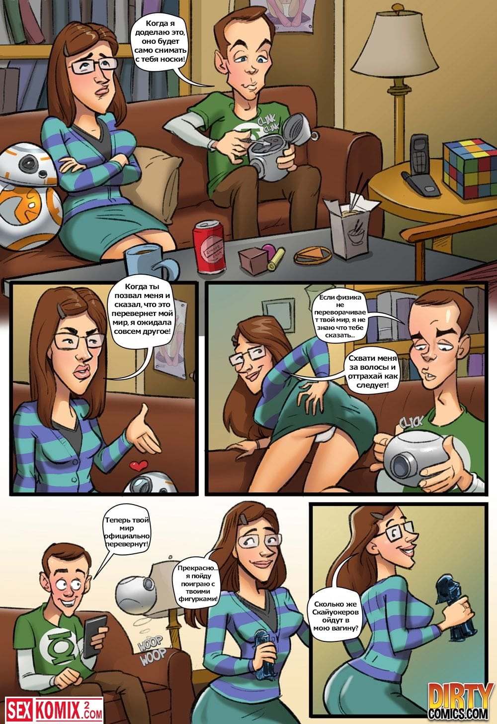 Порно комикс Теория большой оргии. Часть 2. На русском. После очередной ночи в ночном клубе Пени проснулась дома, по мастурбировала и пошла на прослушивание для нового фильма. Когда она пришла на кастинг, то узнала что это должен быть порно фильм, девушку это обрадовала и она согласилась на эту роль.