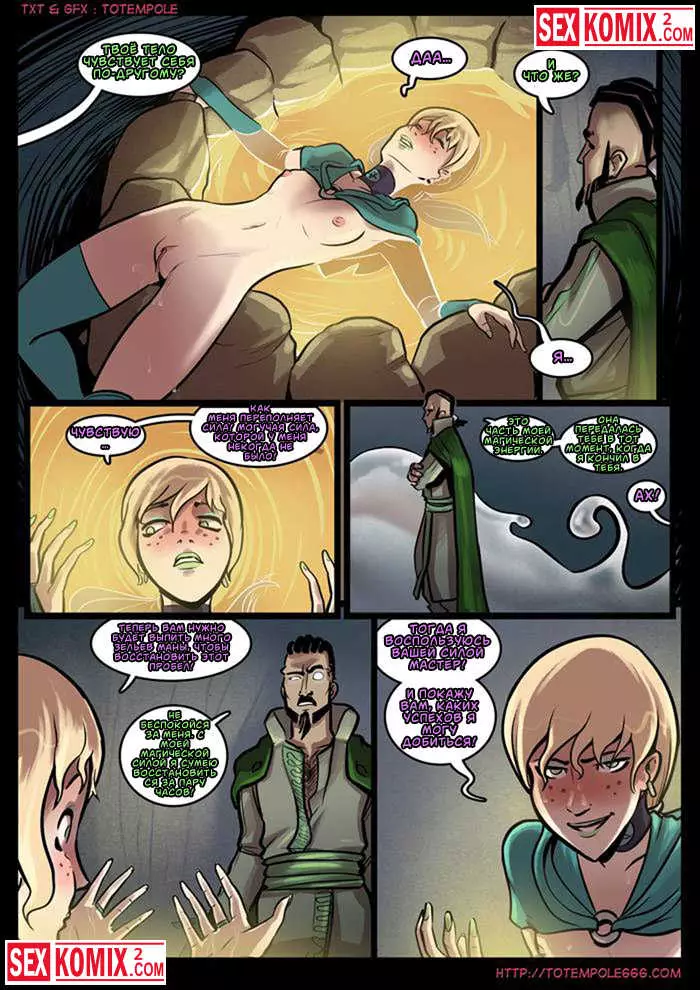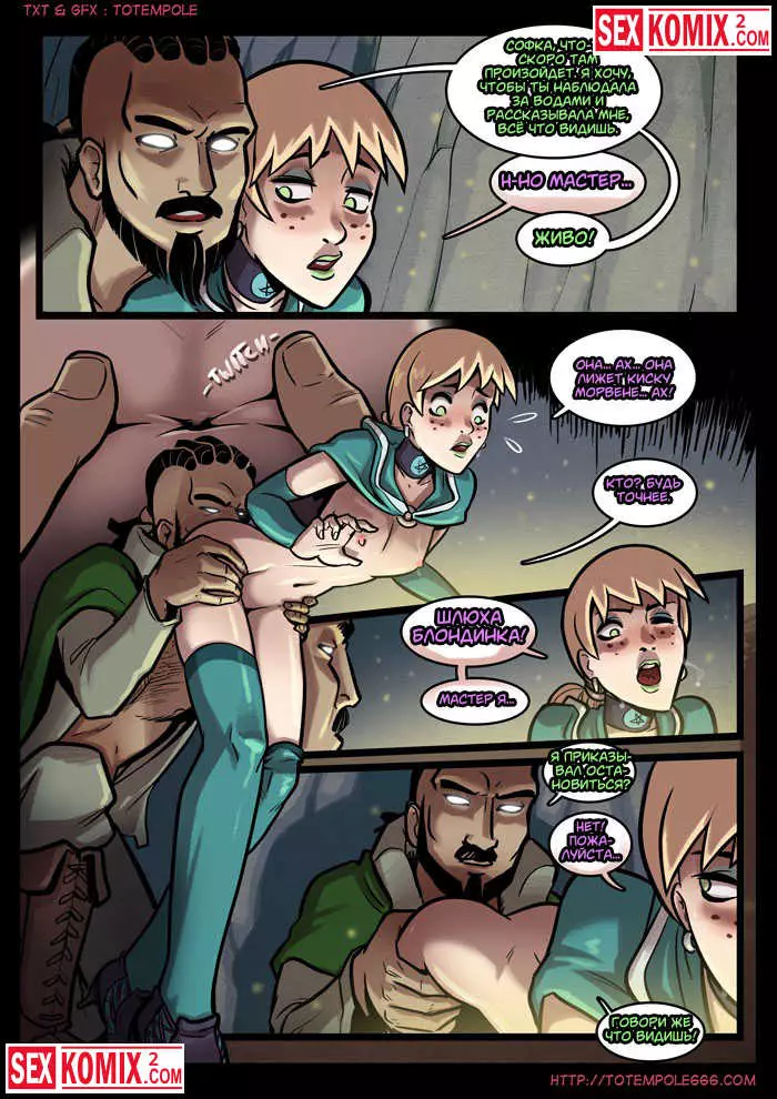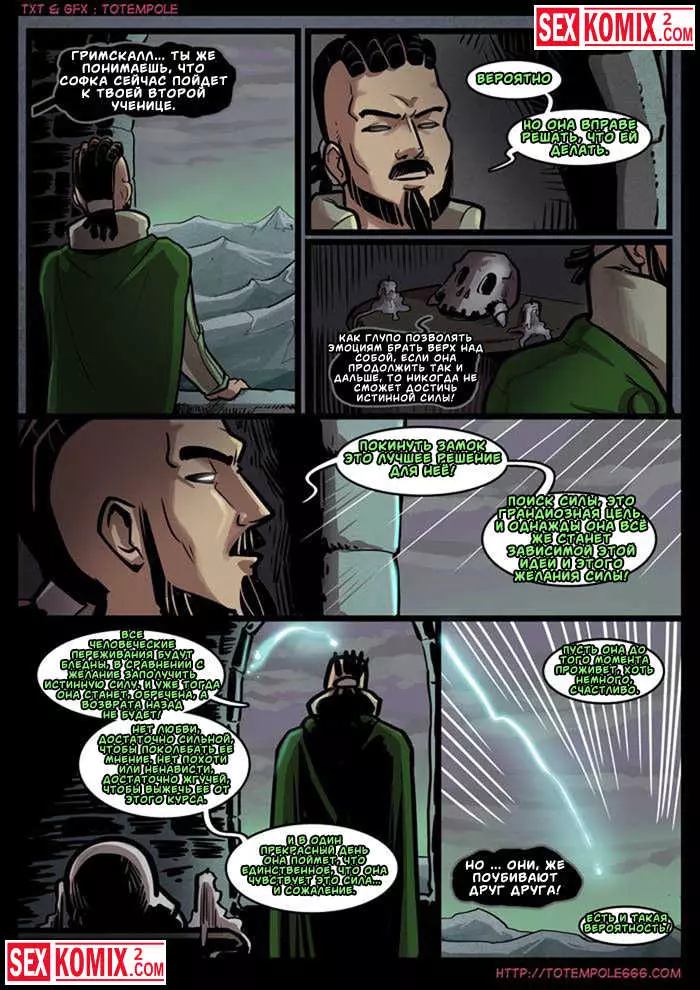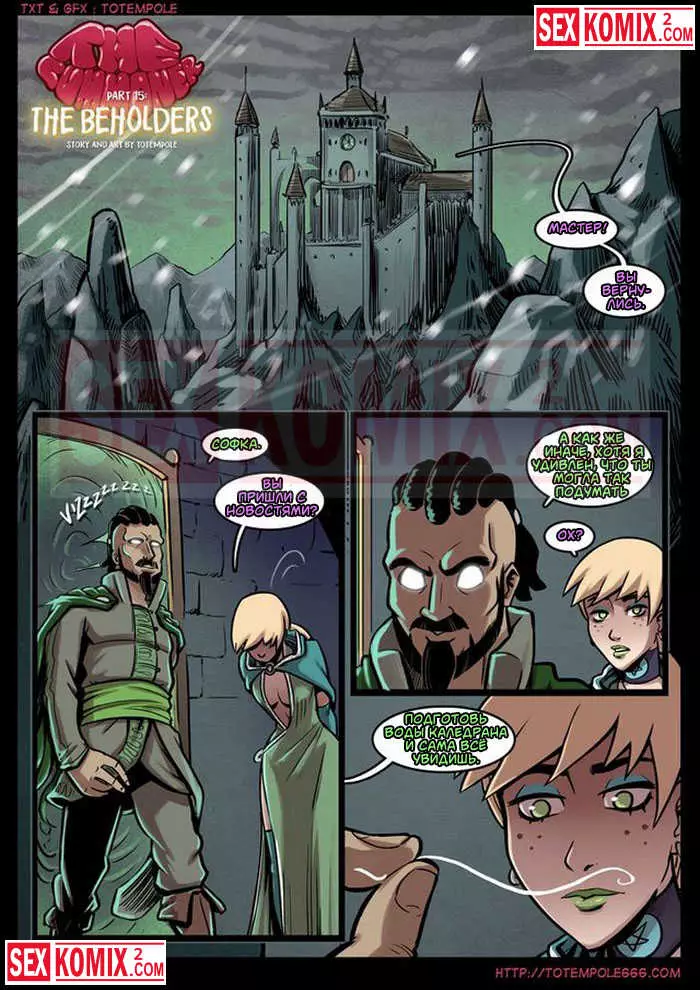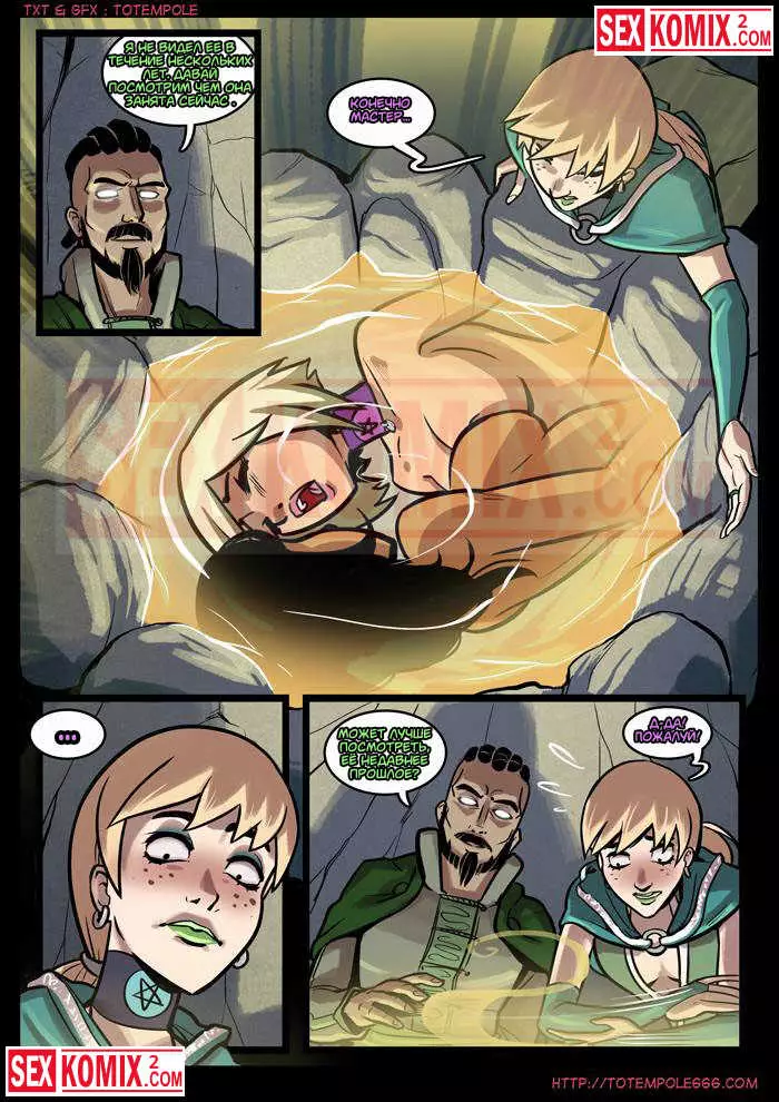 Порно комикс Созерцатели. The Cummoner. В замке могущественного мага, девушка помогает ему. Он читает заклинание и смотрит в будущее, блондинка предаст его в скором времени. Мужчина решает заранее пленить её.