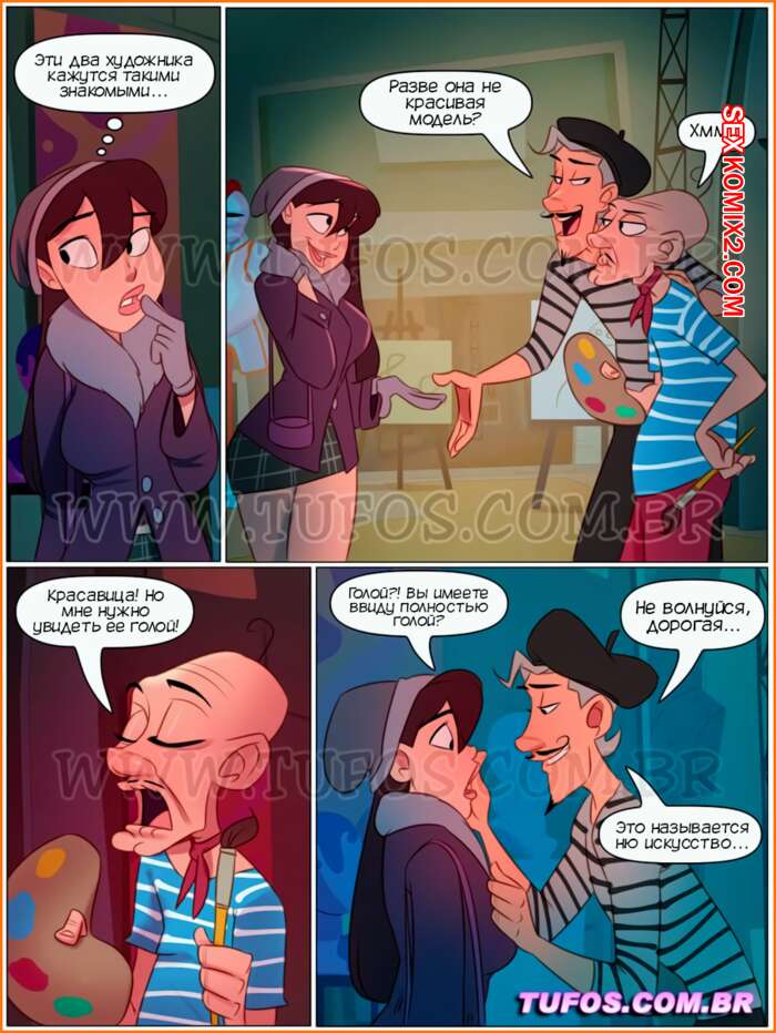 Порно комикс Четверо похотливых. Часть 2. Анинья в Париже. As 4 sacanas. Tufos Горячая брюнетка отправилась в Париж и встретила там двух художников, которые предложили ее нарисовать голой. Девушка разделась, но парни дали ей свои хуи и хорошенько выебали красотку.