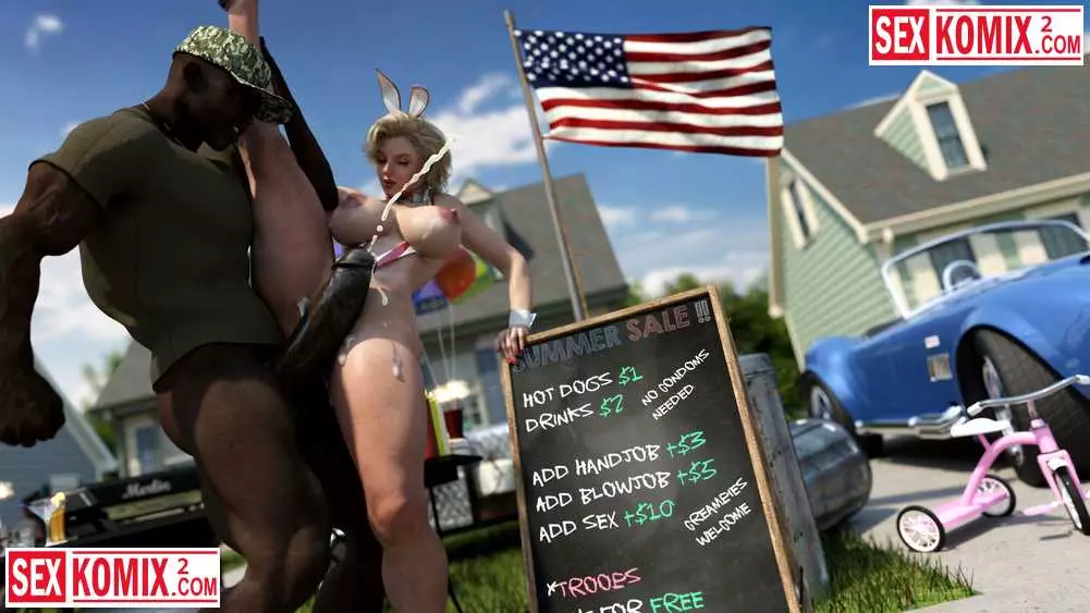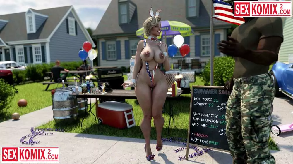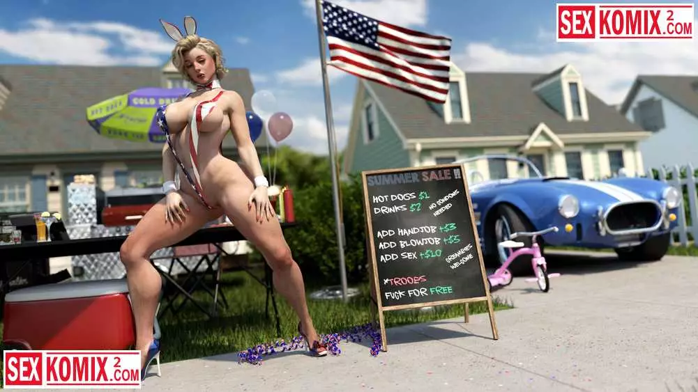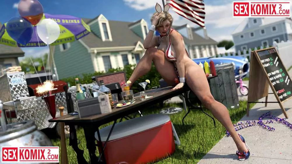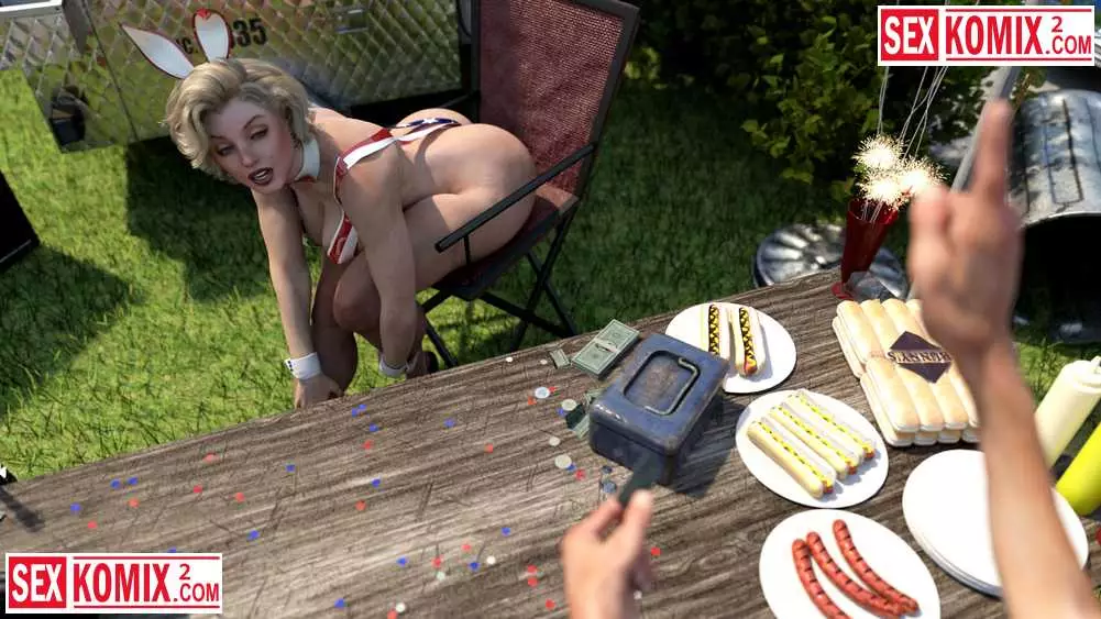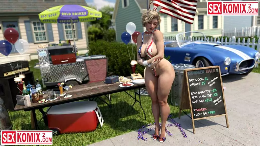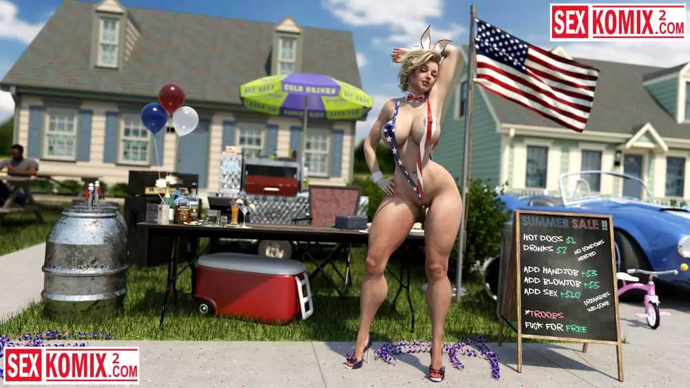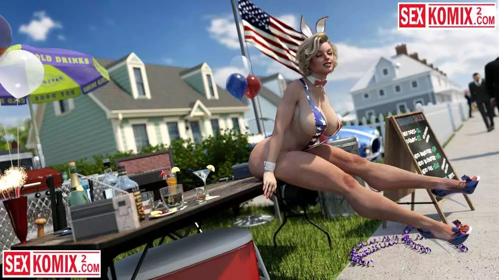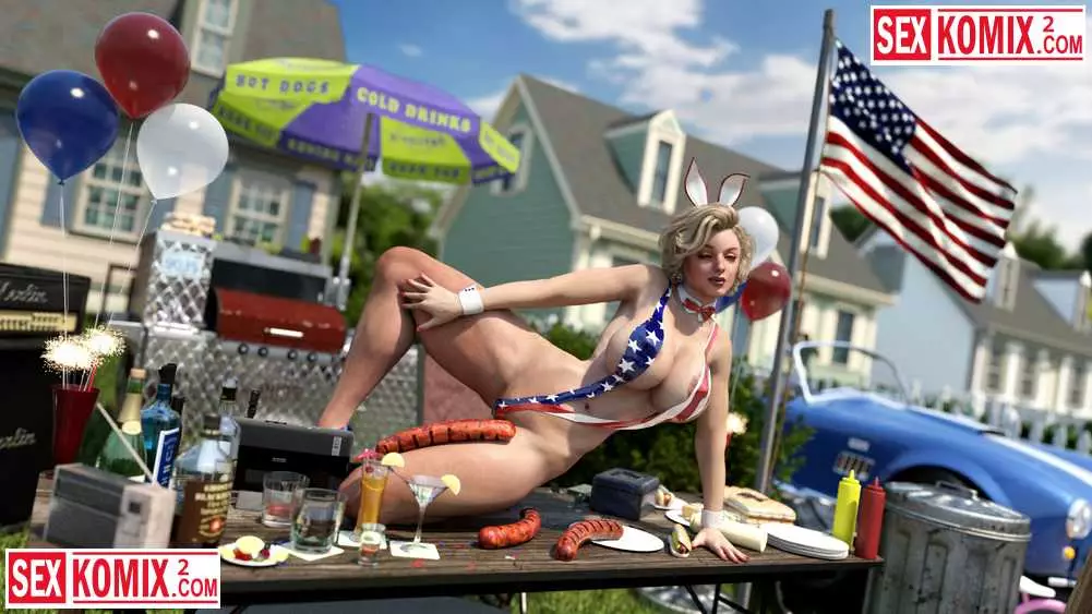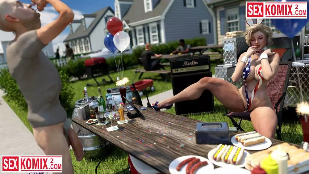 Порно комикс 3д Американское лето. Мэйделин. Горячая американка устроили барбекю в своем дворе и пригласила соседей. Она одела короткие джинсовые шортики и мужчина сбежались как пчелы на мед.
