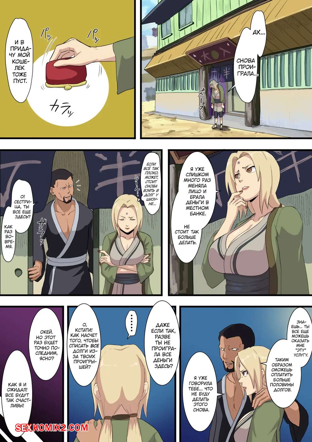 Порно комикс Наруто. Долг Цунаде. Naruto. Tsunade Shakkin. Iwao Сисястая блондинка милфа Цунаде задолжала много денег и теперь она должна их отработать. Красотка встречается с множеством парней и отсасывает их большие хуи, после чего они кончают ей на лицо и сиськи.