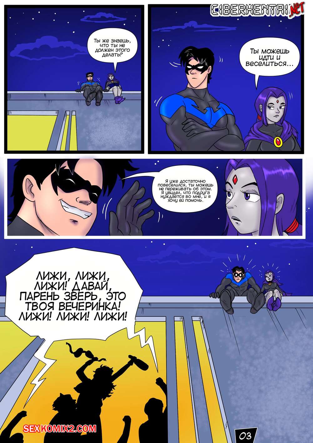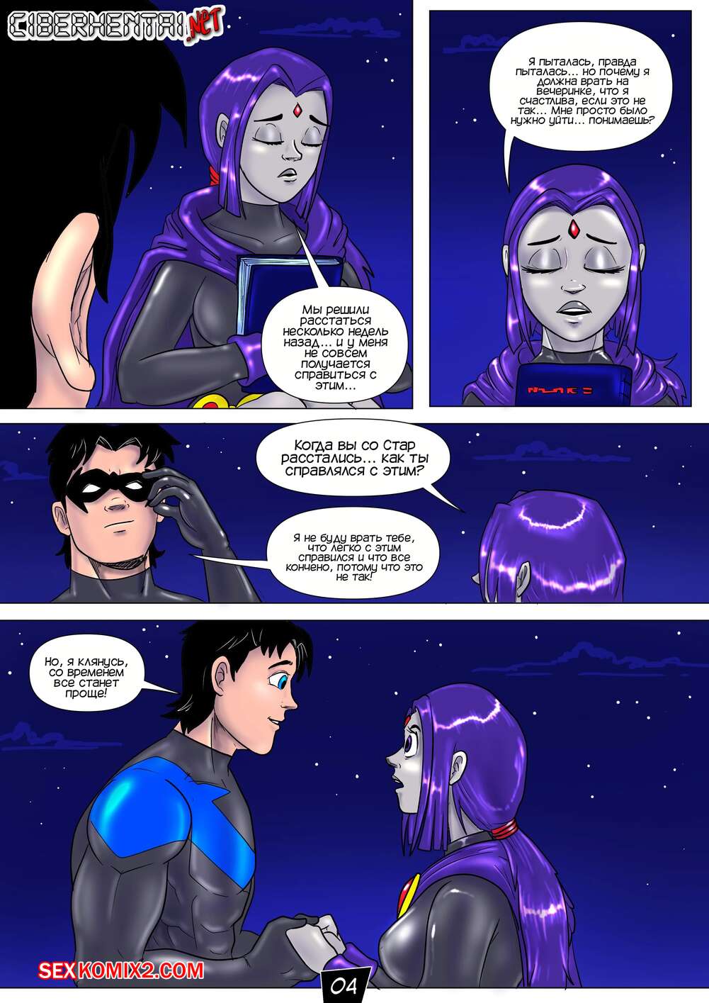 Порно комикс Титаны. Прошлое Рождество. Teen Titans. Last Christmas. Macergo Рейвен грустила на Рождество и Найтвинг решил составить ей компанию. Парочка отправилась в комнату к девушке, где она отсосала хуй своего дружка, после чего он ее хорошенько выебал.