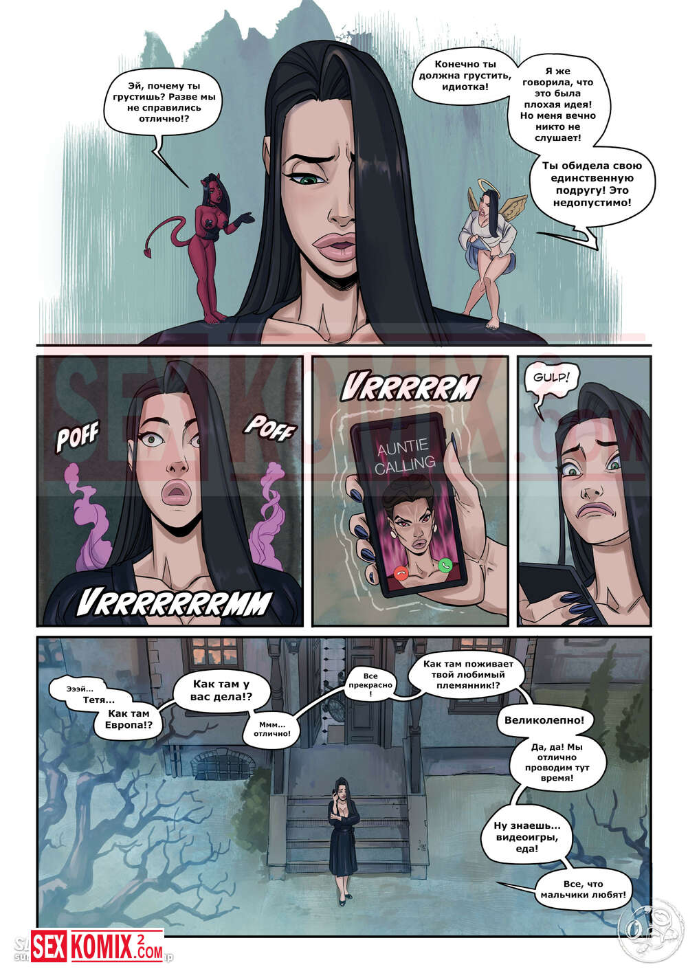 Порно комикс Семейные ценности. Часть 3. После того как парень увидел свою тетю с другой женщиной. Как они занимались сексом в стиле БДСМ. Женщины решили его усыпить и развлечься с ним.