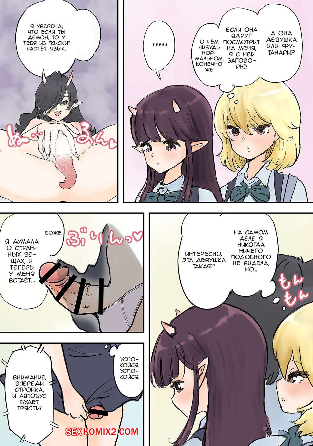 Порно комикс Футанари и похотливая счастливая киска с языком. Tsubame Горячая сисястая блондинка с большим хуем была очень возбуждена и хотела трахаться. Она раздела свою горячую подругу брюнетку, после чего хорошенько ее выебала, получив огромное удовольствие.