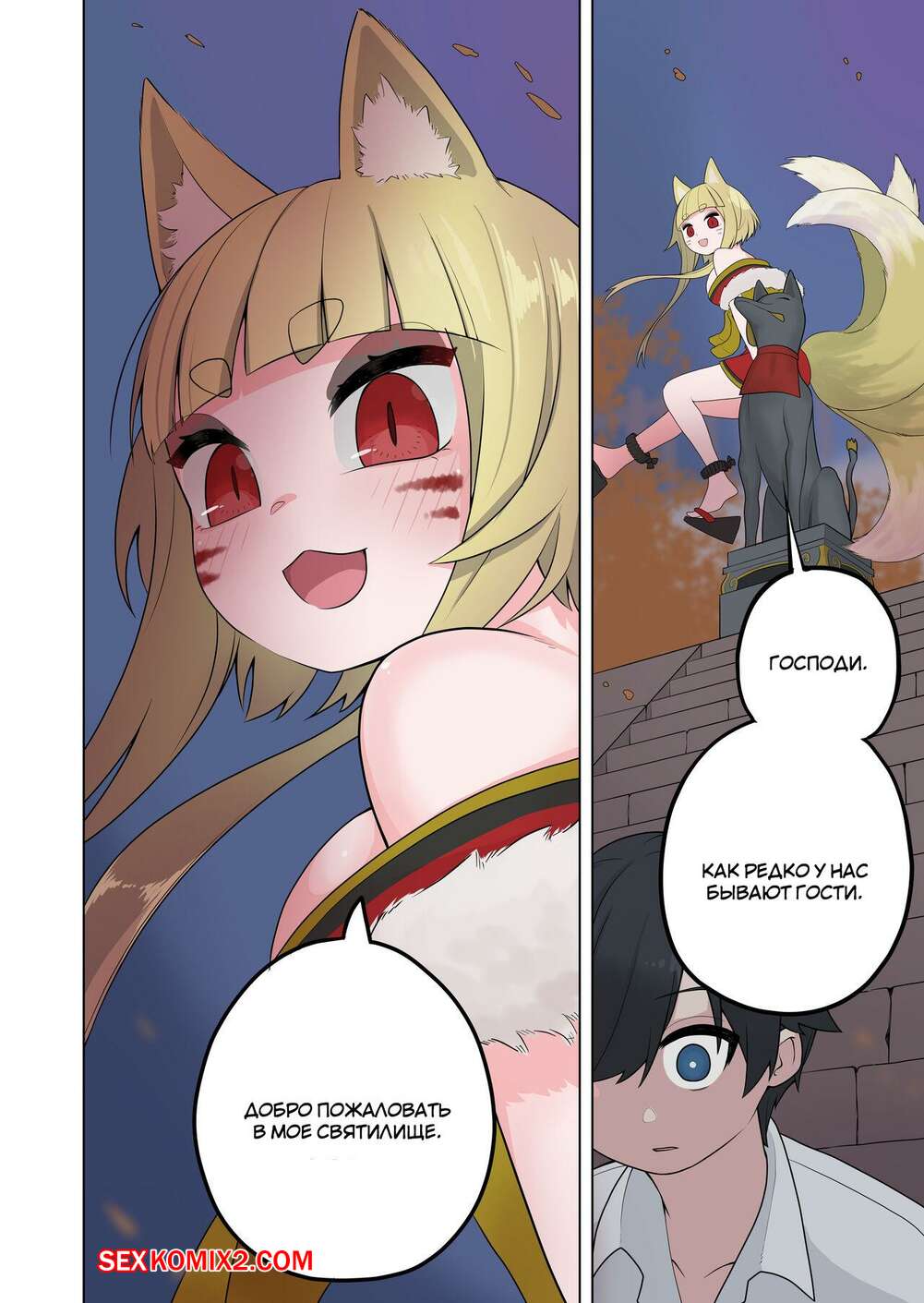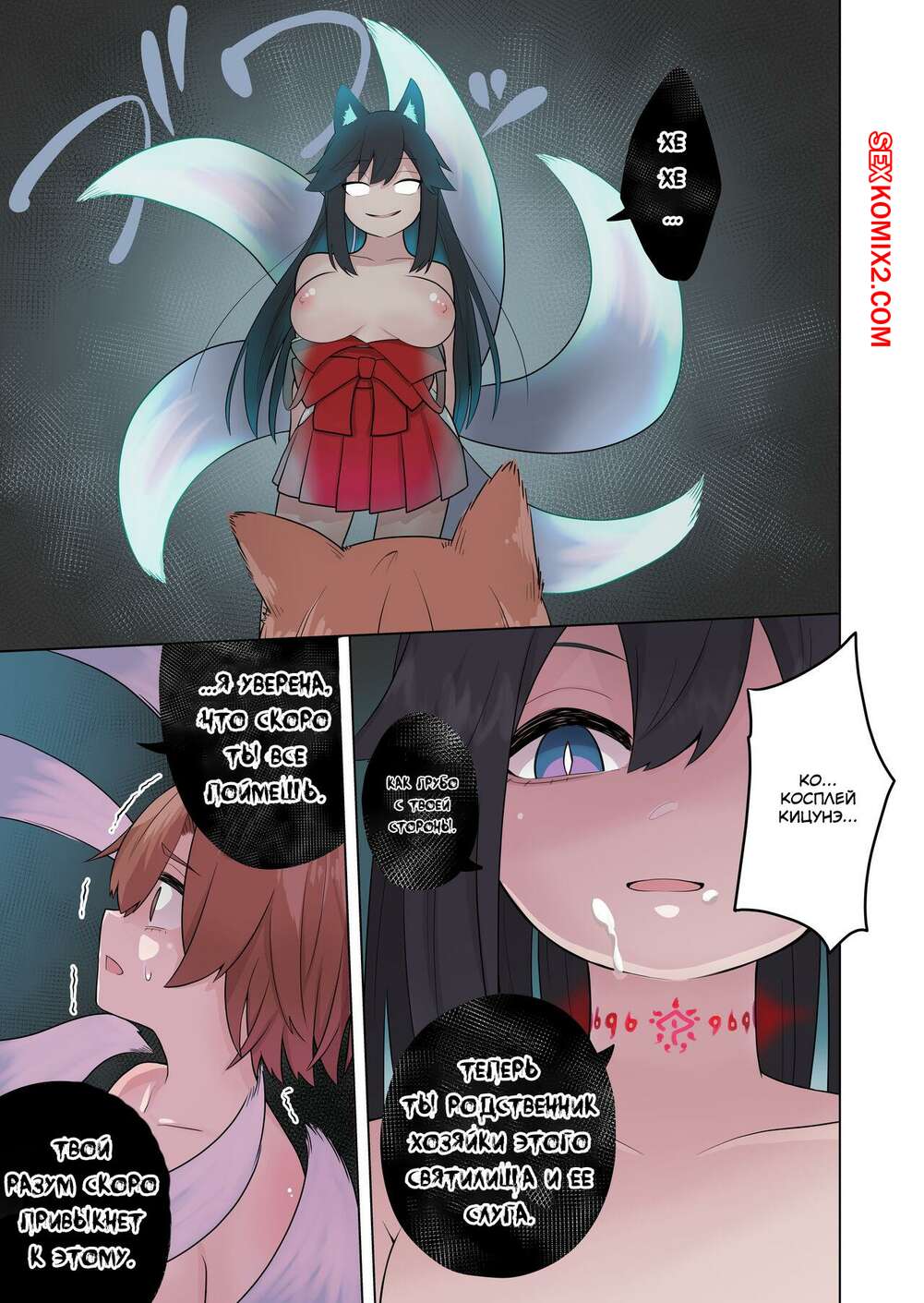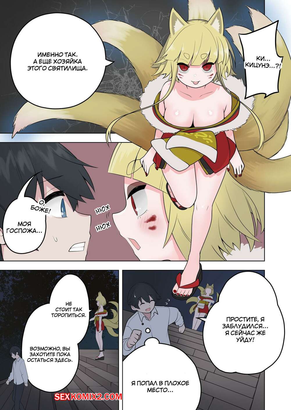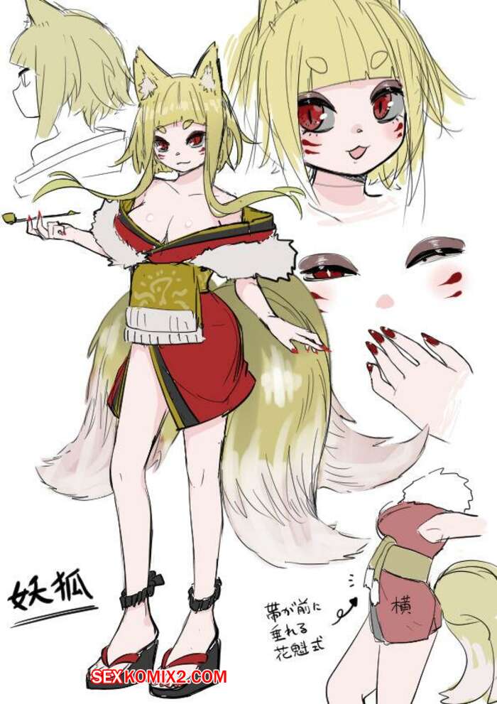 Порно комикс Inran Kitsune Musume no Kamikakushi. Ahoge Kinoko Горячая сисястая блондинка была очень возбуждена и решила повеселиться со своим дружком. Она превратила его в девушку, после чего они занялись страстной лесбийской еблей.
