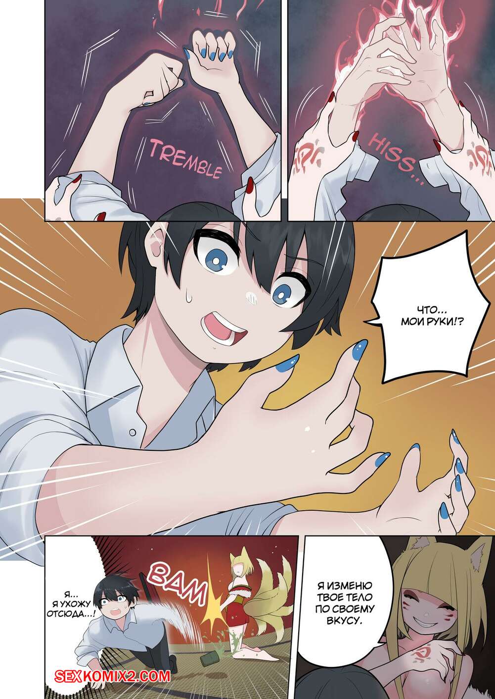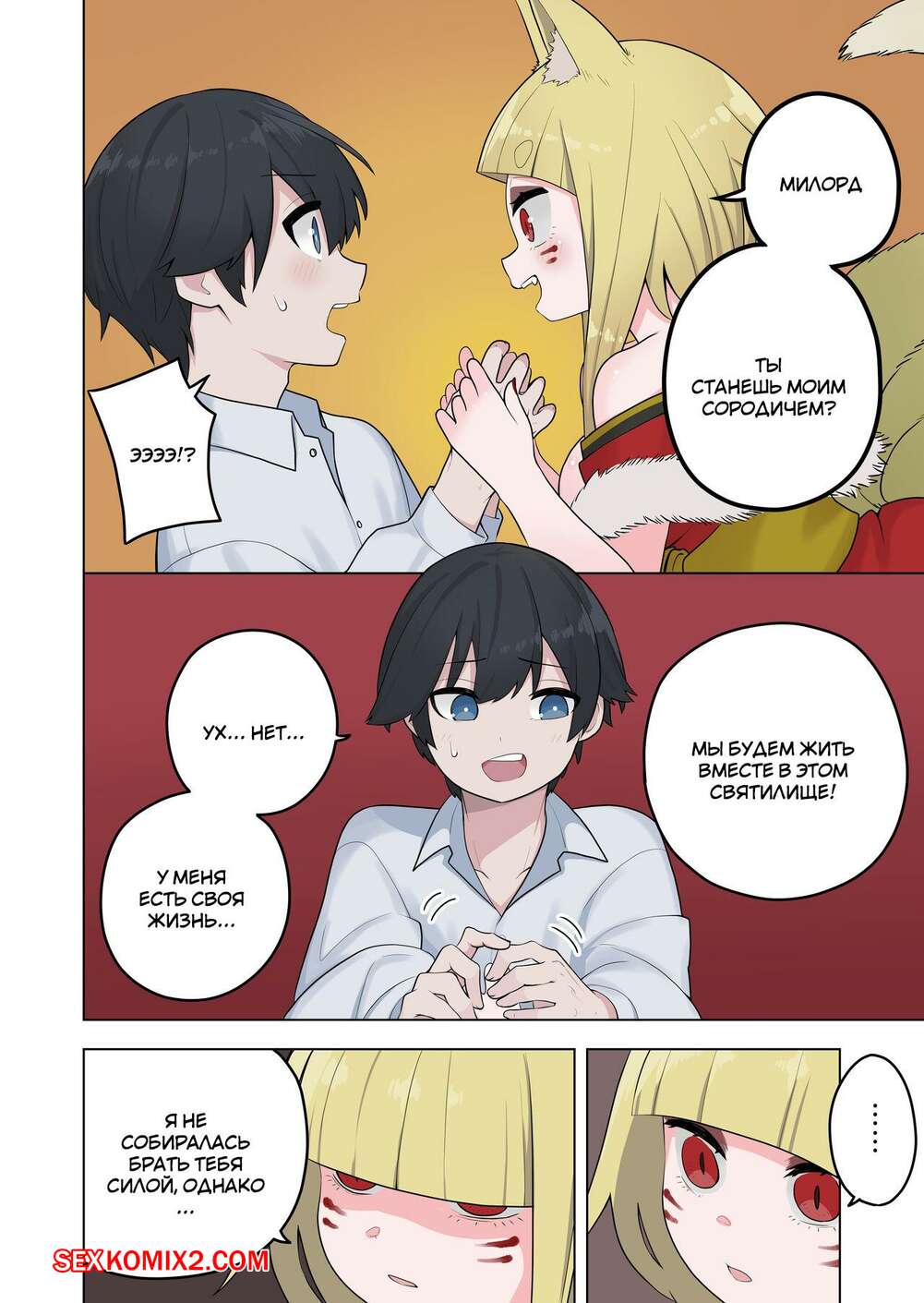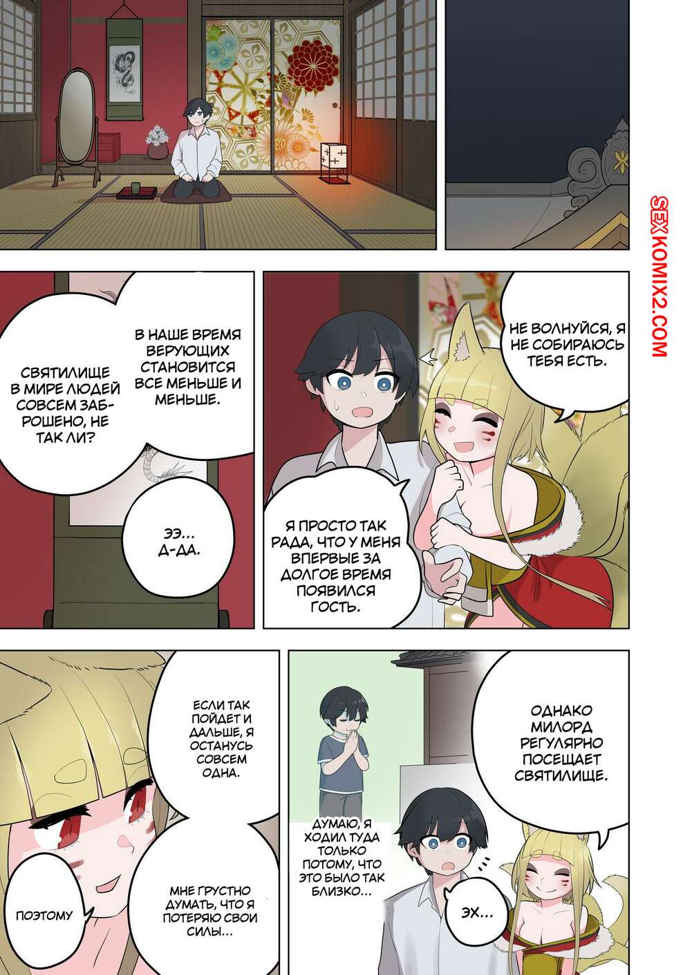 Порно комикс Inran Kitsune Musume no Kamikakushi. Ahoge Kinoko Горячая сисястая блондинка была очень возбуждена и решила повеселиться со своим дружком. Она превратила его в девушку, после чего они занялись страстной лесбийской еблей.