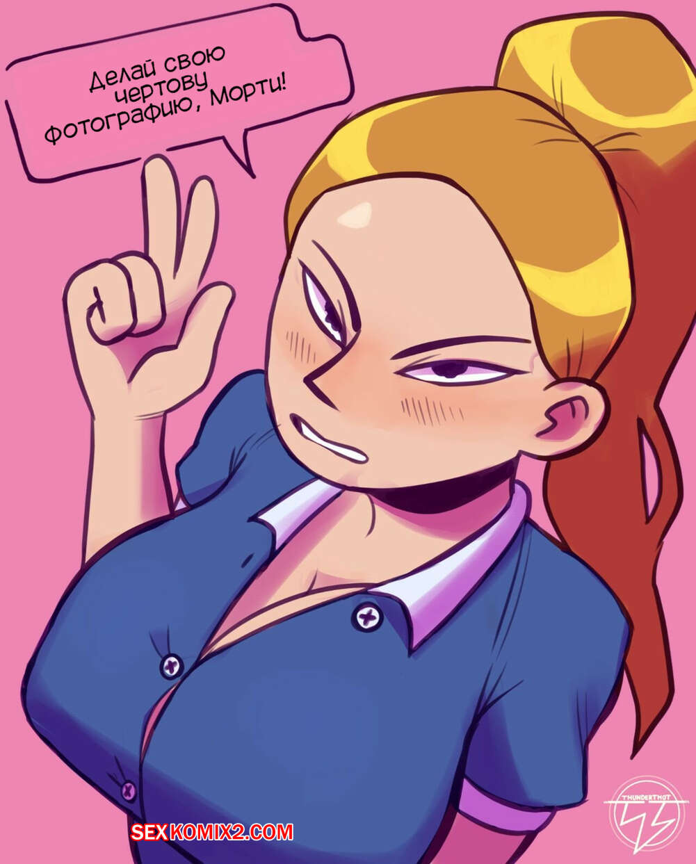 Порно комикс Рик и Морти. Саммер и Морти. Summer and Morty. ThunderThot Горячая красотка Саммер была очень возбуждена и решила повеселиться со своим дружком. Она разделась перед парнем и стала сосать его большой хуй, после чего дала ему себя хорошенько выебать.