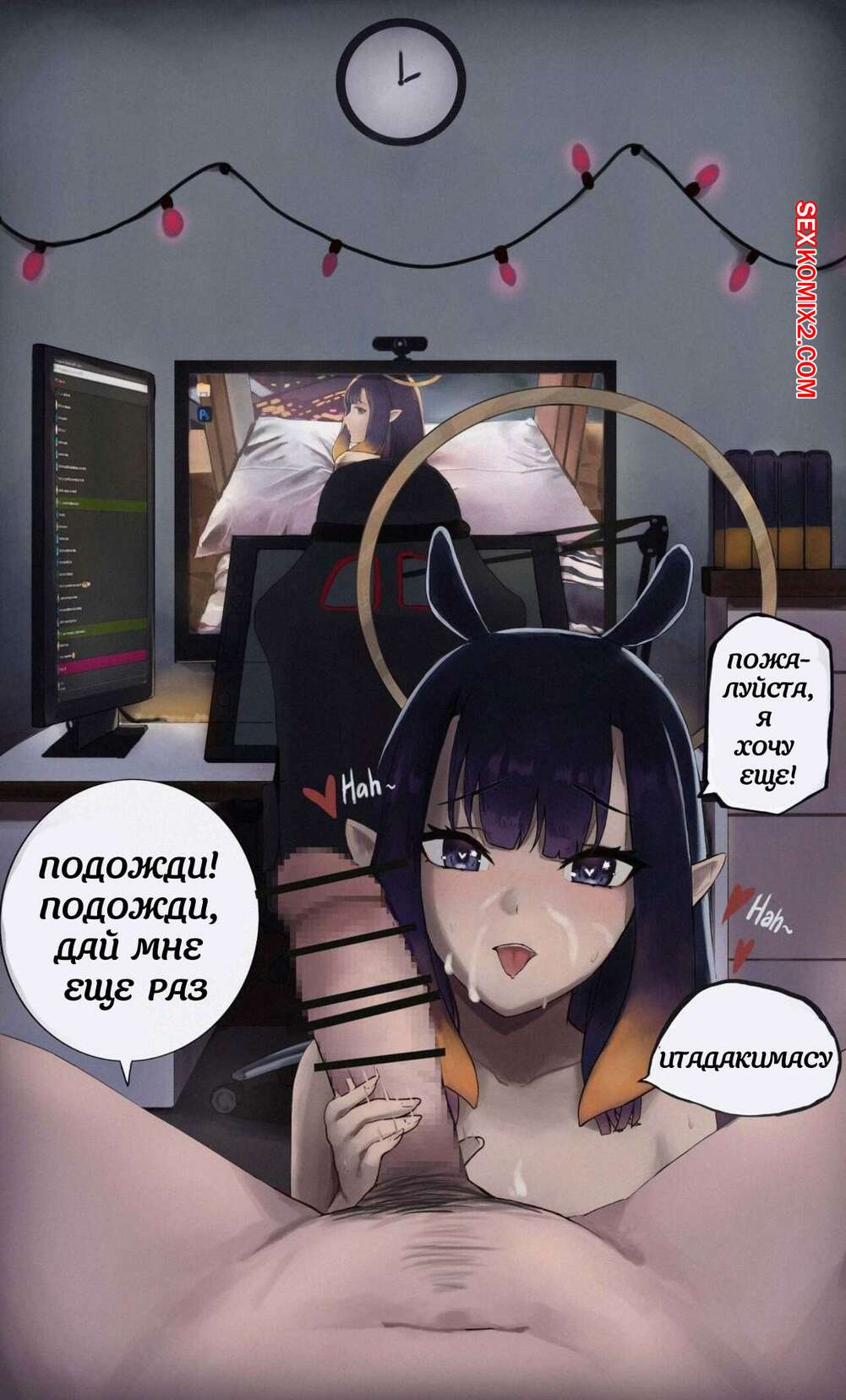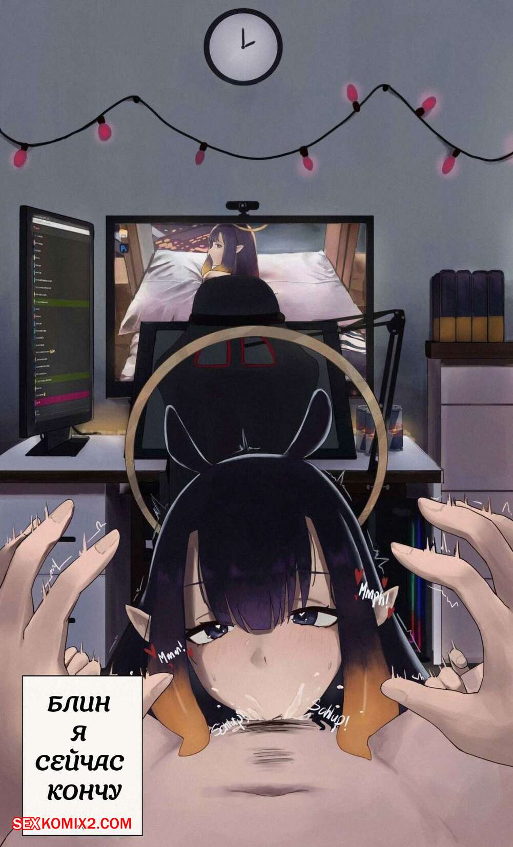 Порно комикс Hololive. Ninomae Inanis Горячая сексуальная брюнетка была очень возбуждена и хотела трахаться. Она встала на колени перед своим дружком и стала сосать его большой хуй, после чего дала ему кончить себе в ротик.