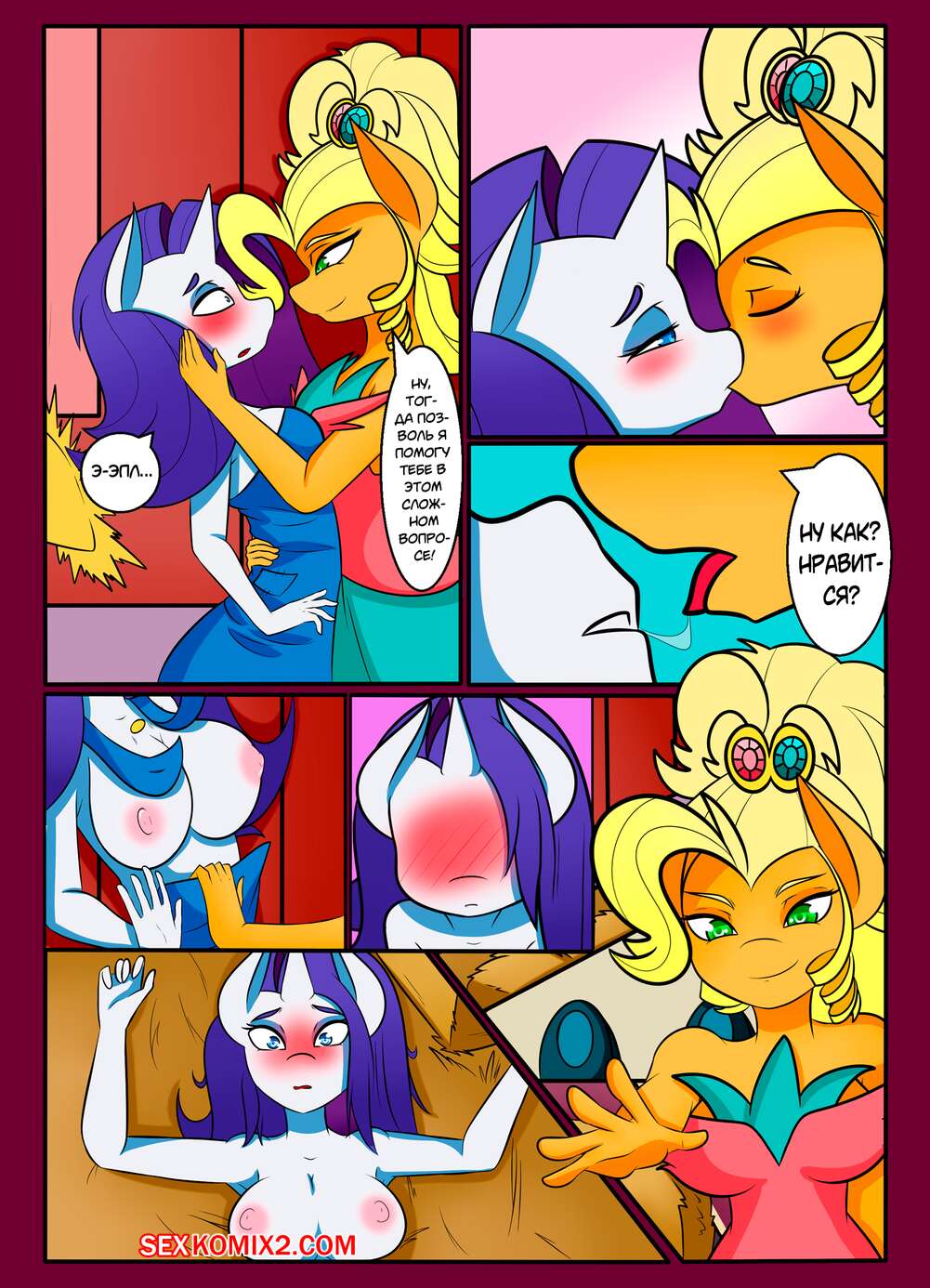 Порно комикс My Little Pony. Рарити и Эплджек. Caoscore Горячие красотки пони были очень возбуждены и хотели трахаться. Они разделись и стали ласкать друг дружку, после чего занялись страстной лесбийской еблей.