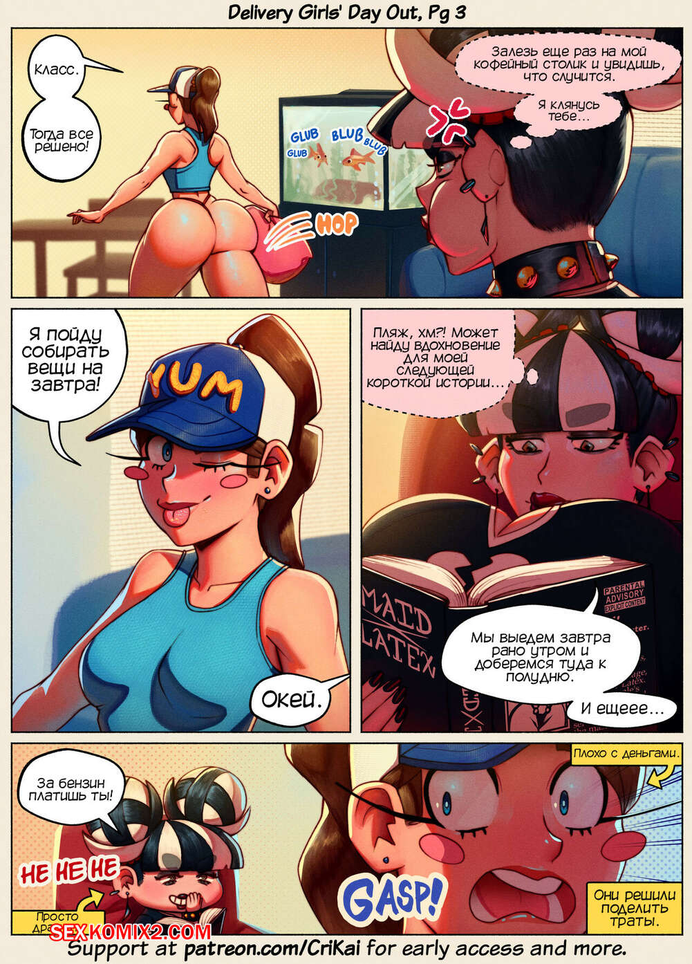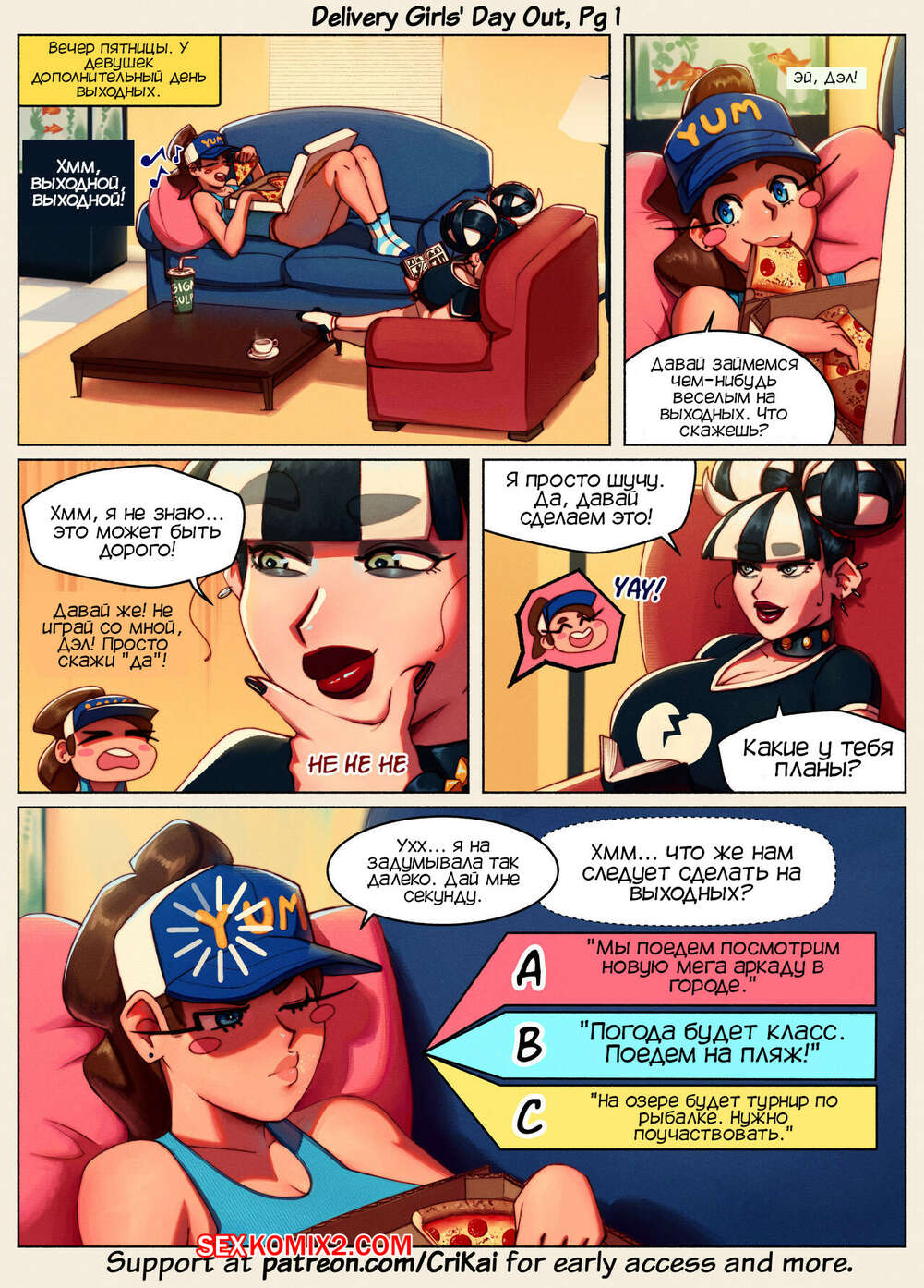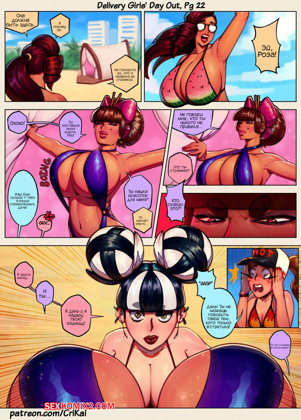 Порно комикс День девочеккурьеров. Delivery Girls Day Out. CriKai Две горячие красотки скучали дома и решили отправиться на выходные на пляж. Одна из подруг стала в спешке собираться, желая поскорее провести незабываемый отдых.
