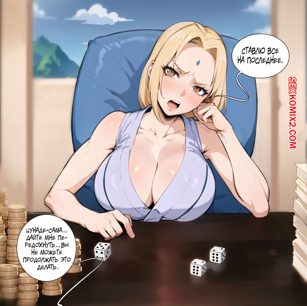 Порно комикс Naruto. Игра в кости с Цунаде. Kisou Горячая сексуальная блондинка проиграла в кости своему темнокожему дружку, поэтому теперь ей нужно выполнить его желание. Красотка дала разделась и дала ему себя хорошенько выебать.
