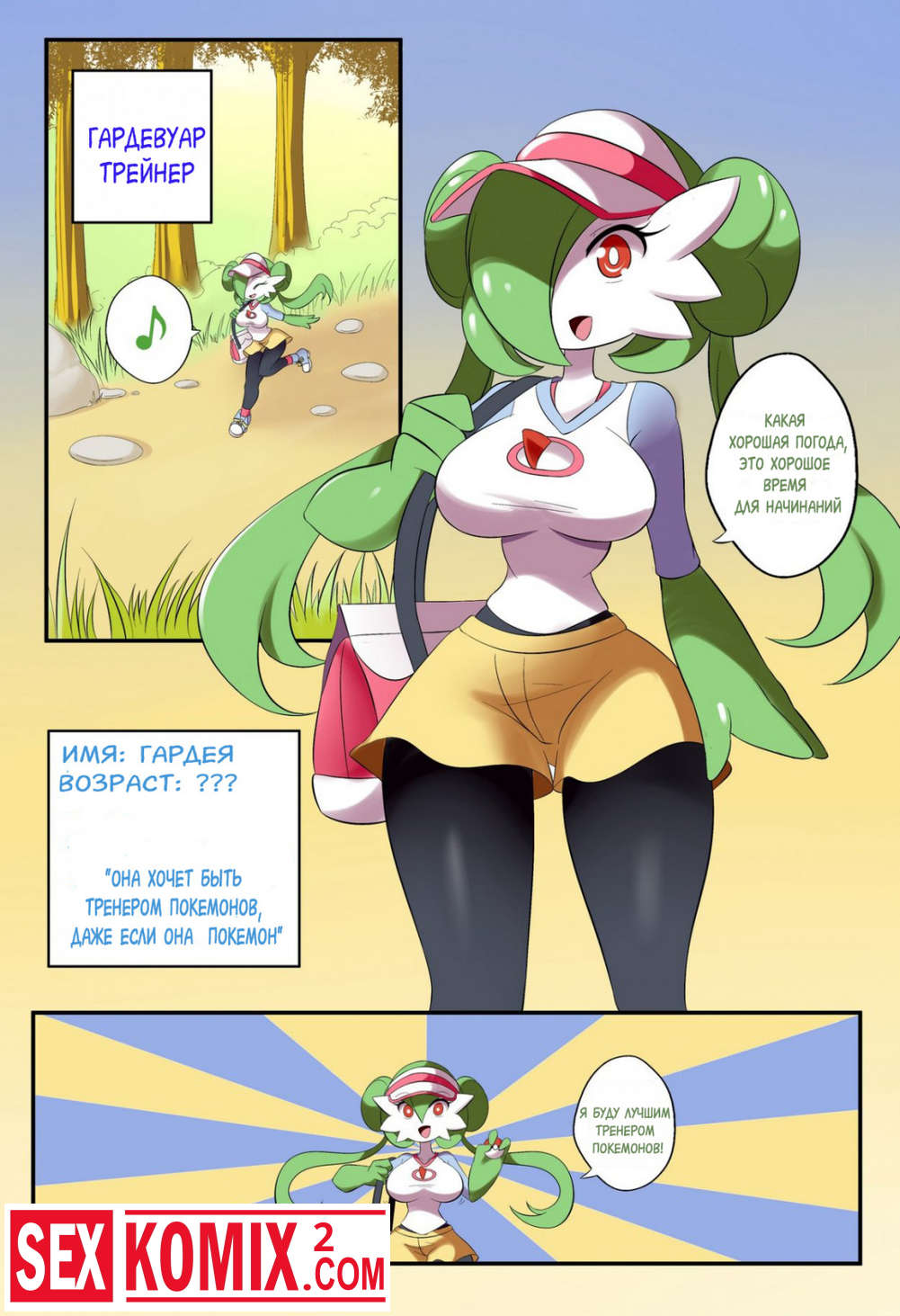 Порно комикс Как Гардевуар первого покемона получала. Девушка тренер покемонов, пошла н поиски нового питомца попала в сложную ситуацию. Она казалась без одежды и покемона.