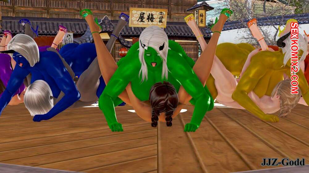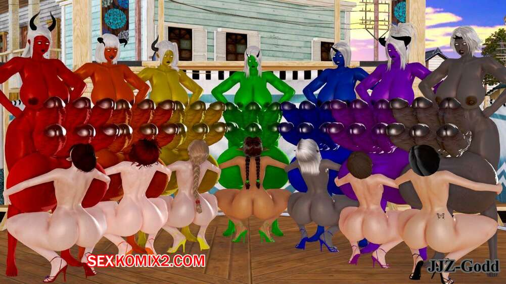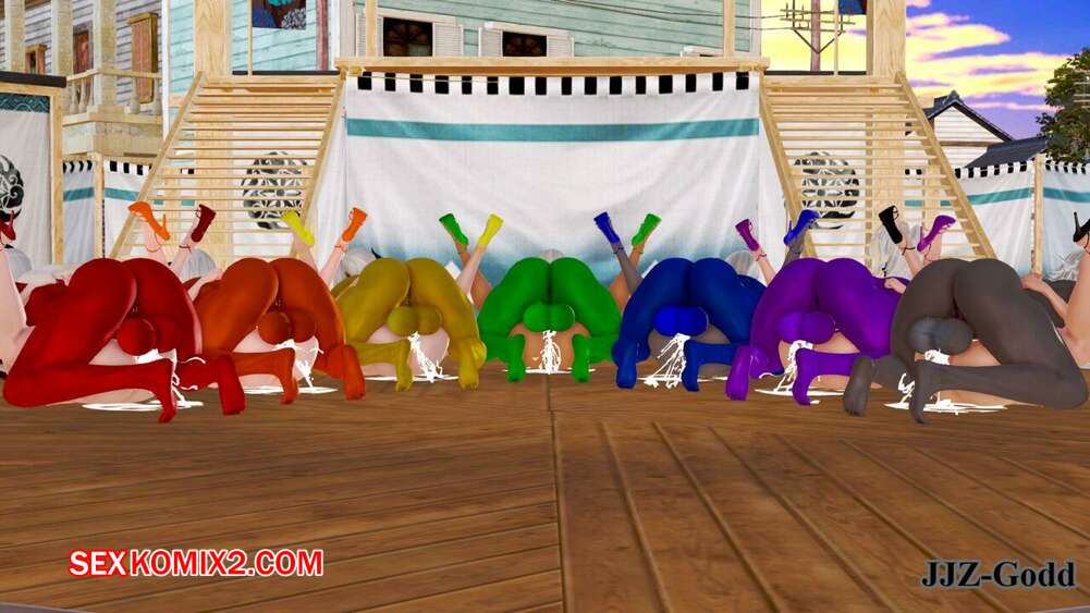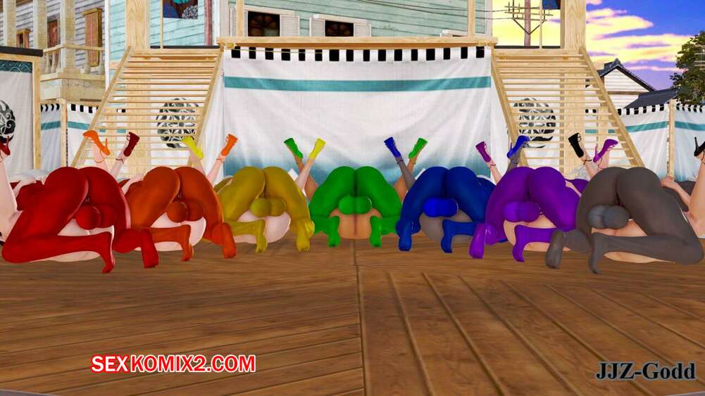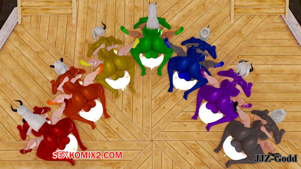 Порно комикс Попробуй Радугу. JJZ Godd Разноцветные красотки с тремя большими хуями были очень возбуждены и хотели трахаться. Они раздели девушек и дали им отсосать свои большие хуи, после чего хорошенько ее выебали.