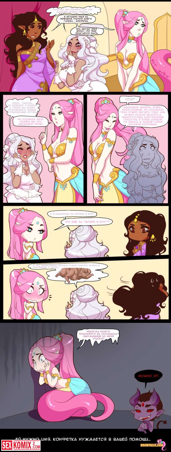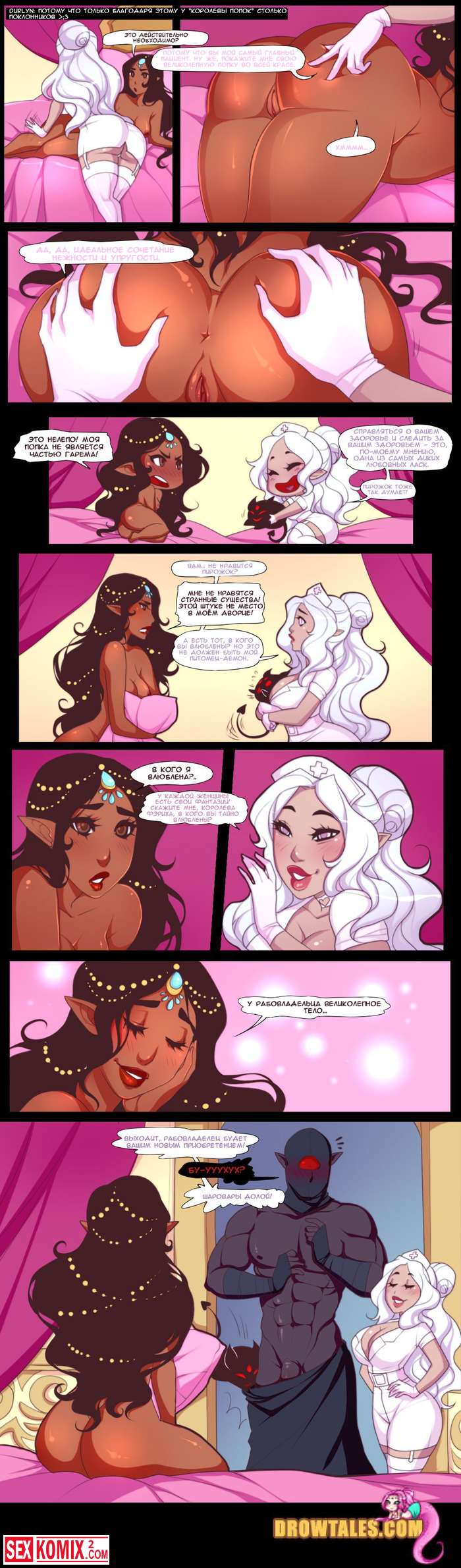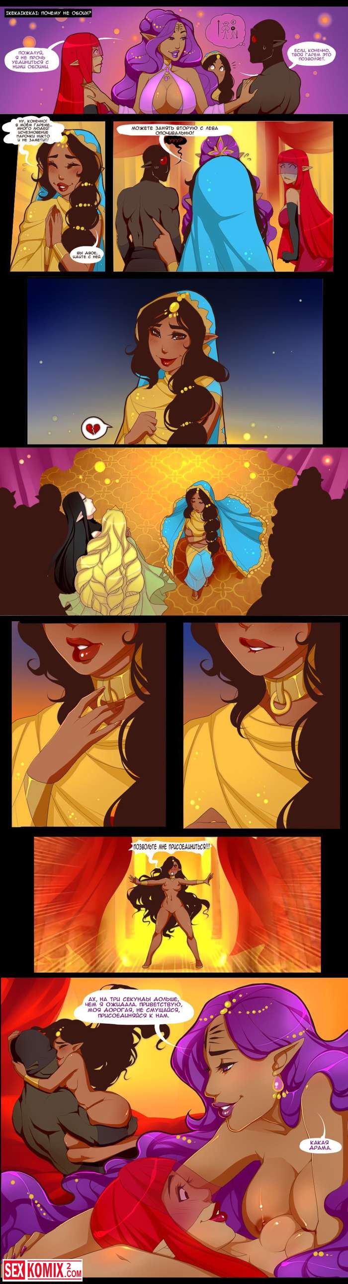 Порно комикс Королева попок. Часть 3. В покоях принцессы разгораются настоящие страсти, все фантастические существа занимаются сексом и устраивают оргии.