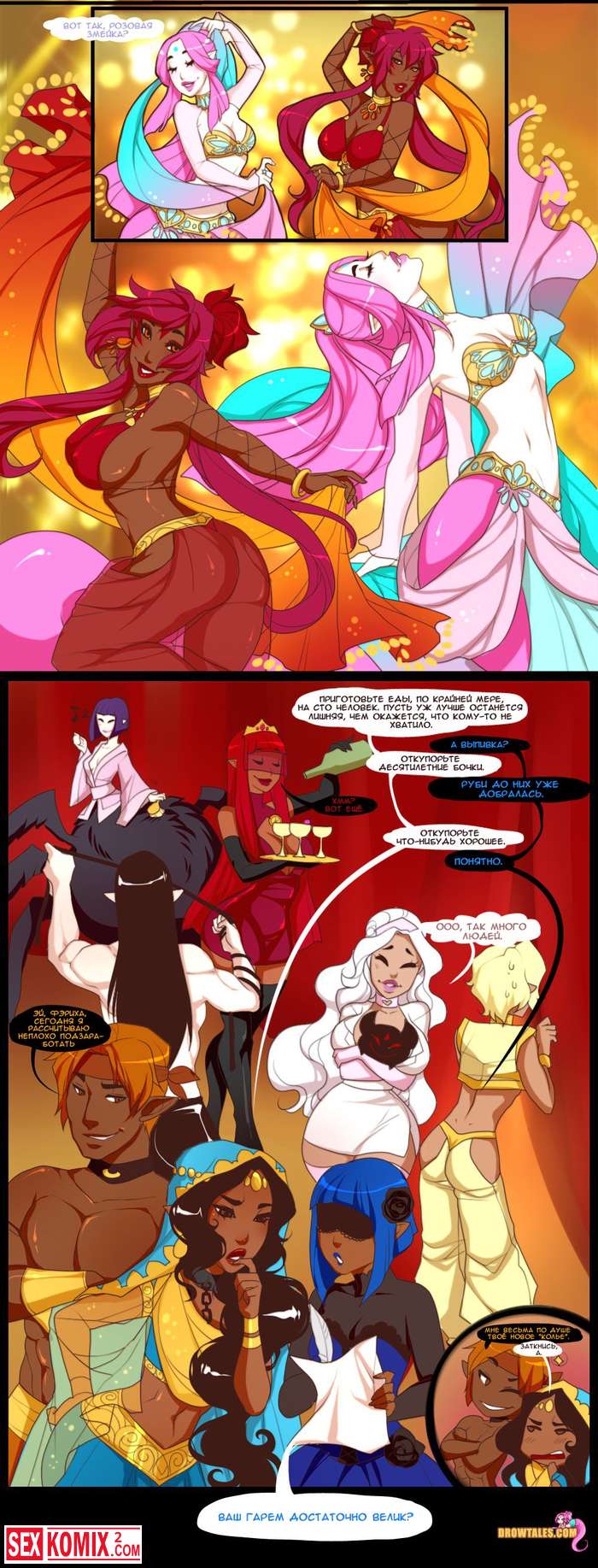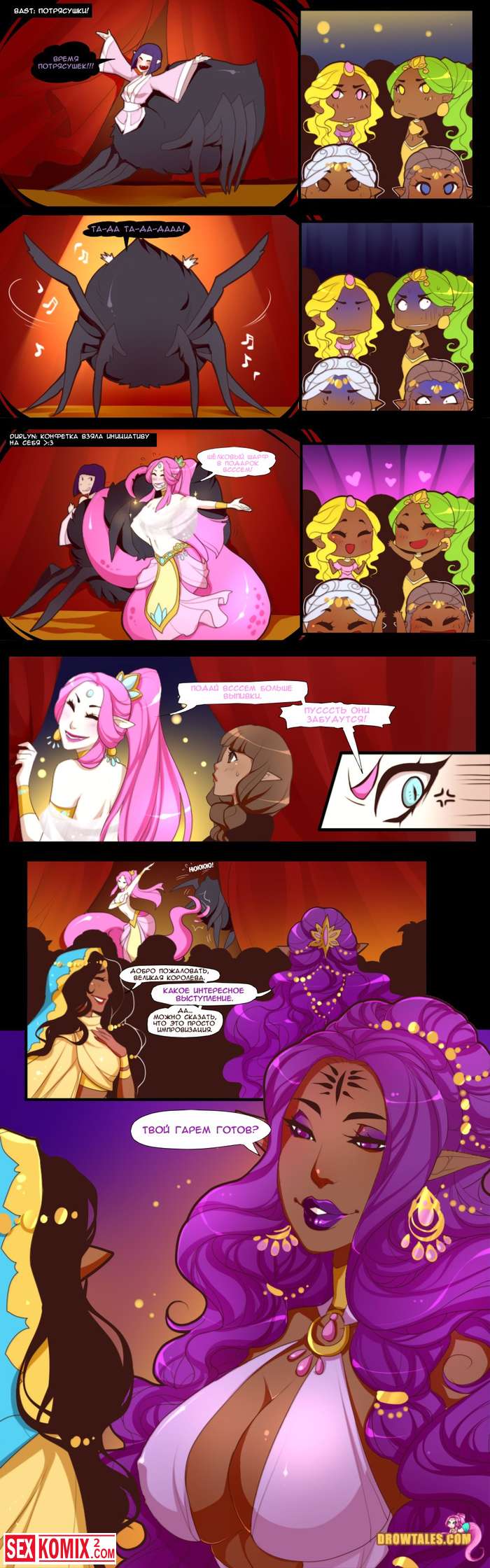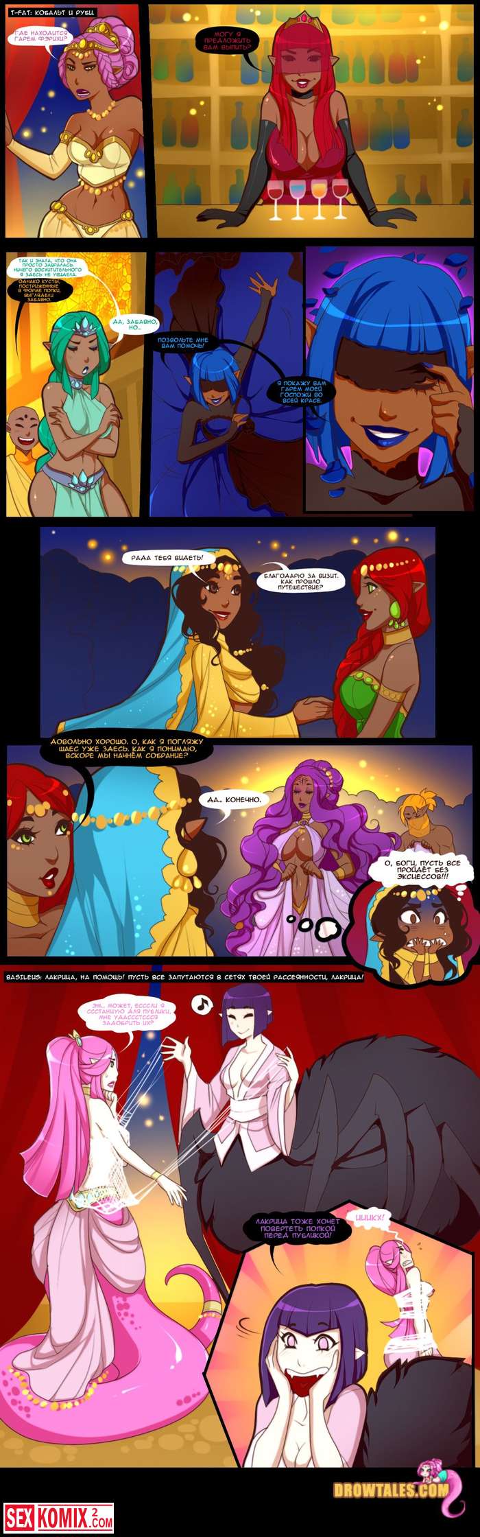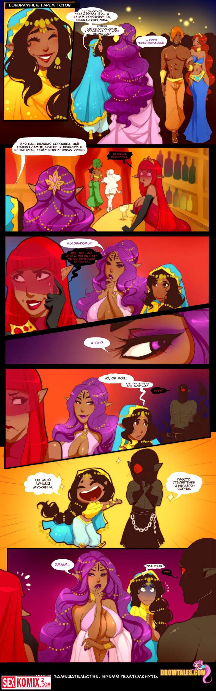 Порно комикс Королева попок. Часть 3. В покоях принцессы разгораются настоящие страсти, все фантастические существа занимаются сексом и устраивают оргии.