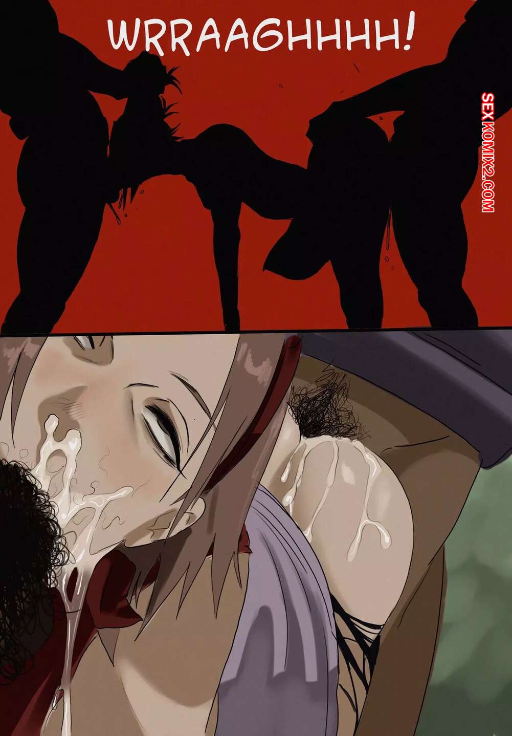 Порно комикс Naruto. Миссия Сакуры. DabuM На сексуальную красотку Сакуру в лесу напали бандиты и решили с ней хорошенько повеселиться. Пока один парень трахал красотку в ротик, его дружок выебал Сакуру в задницу и кончил в нее.