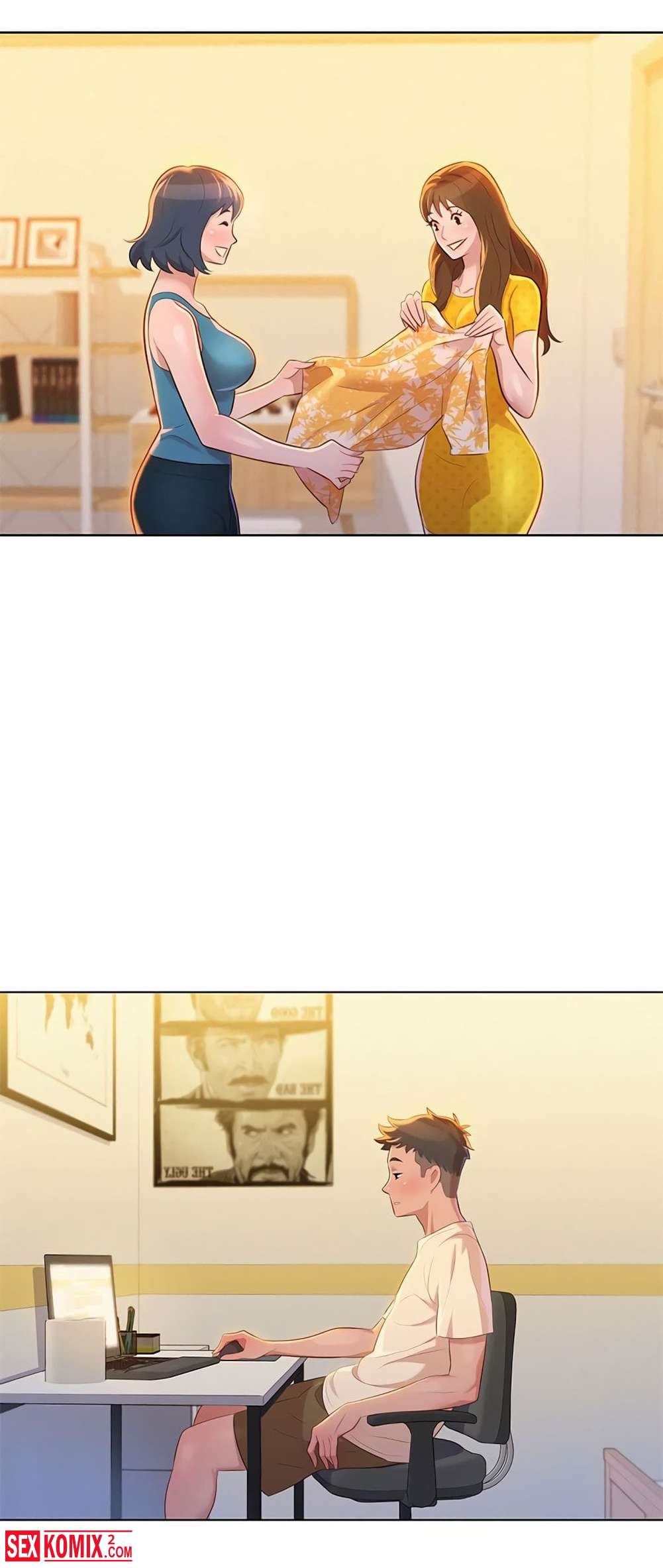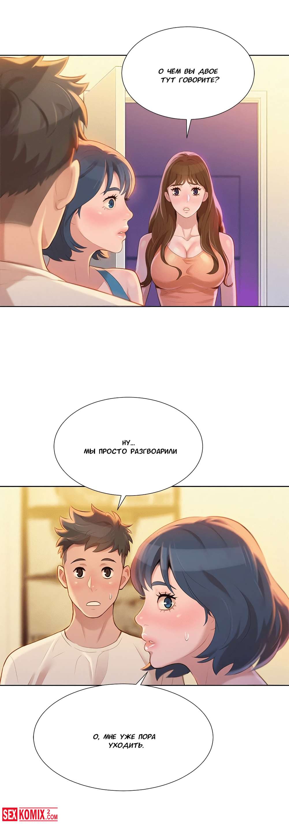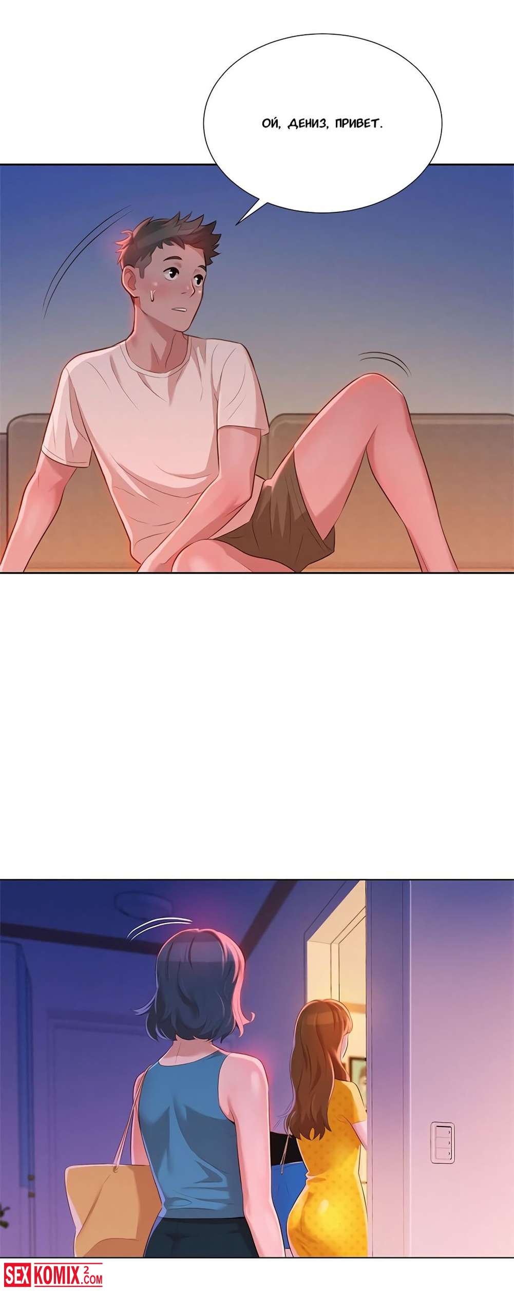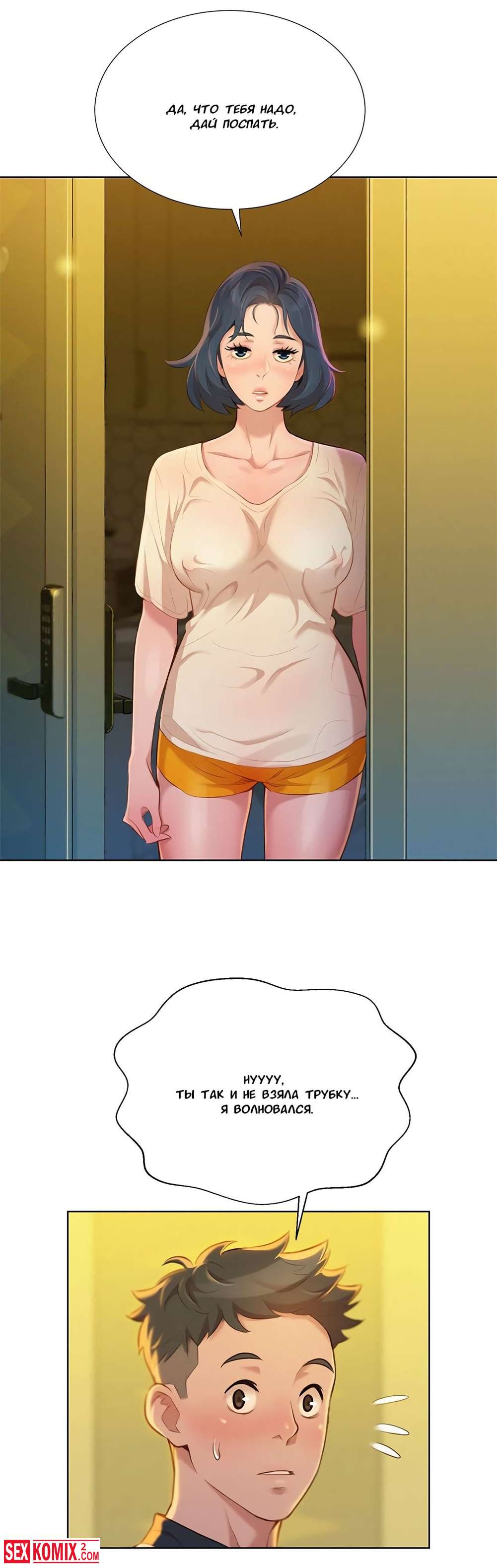 Порно комиксы Сестра по соседству. Часть 9 и 10. Парень провел ночь с горячей красоткой, но начал переживать, что его друг трахнул его сестру. Он пошел к другу ему открыла его сестра в футболке друга.