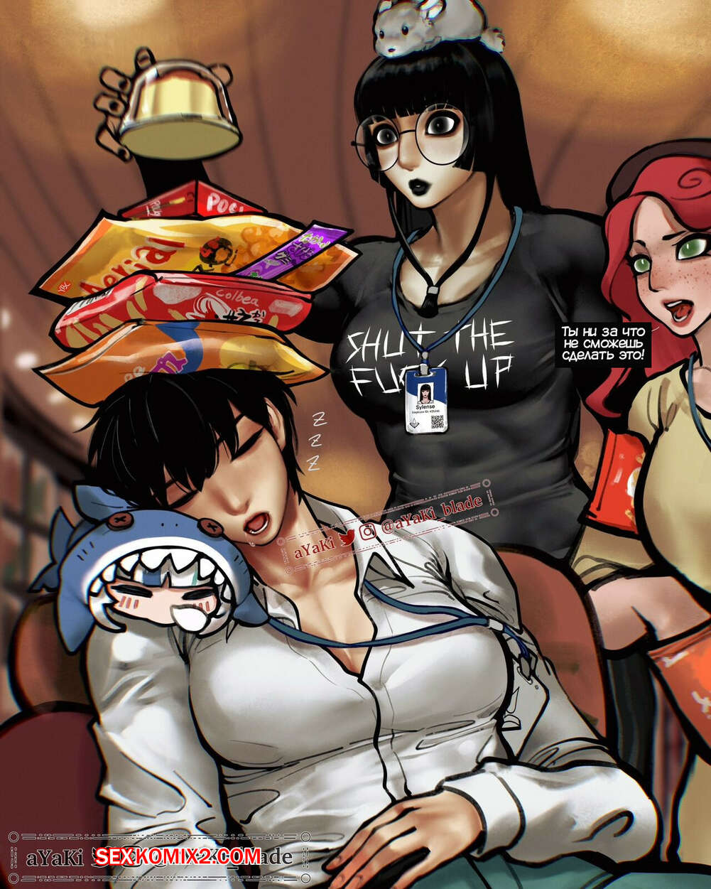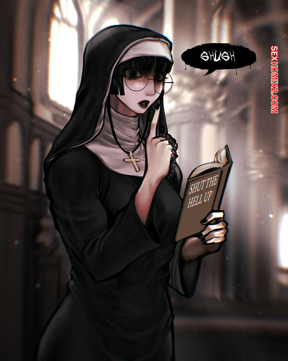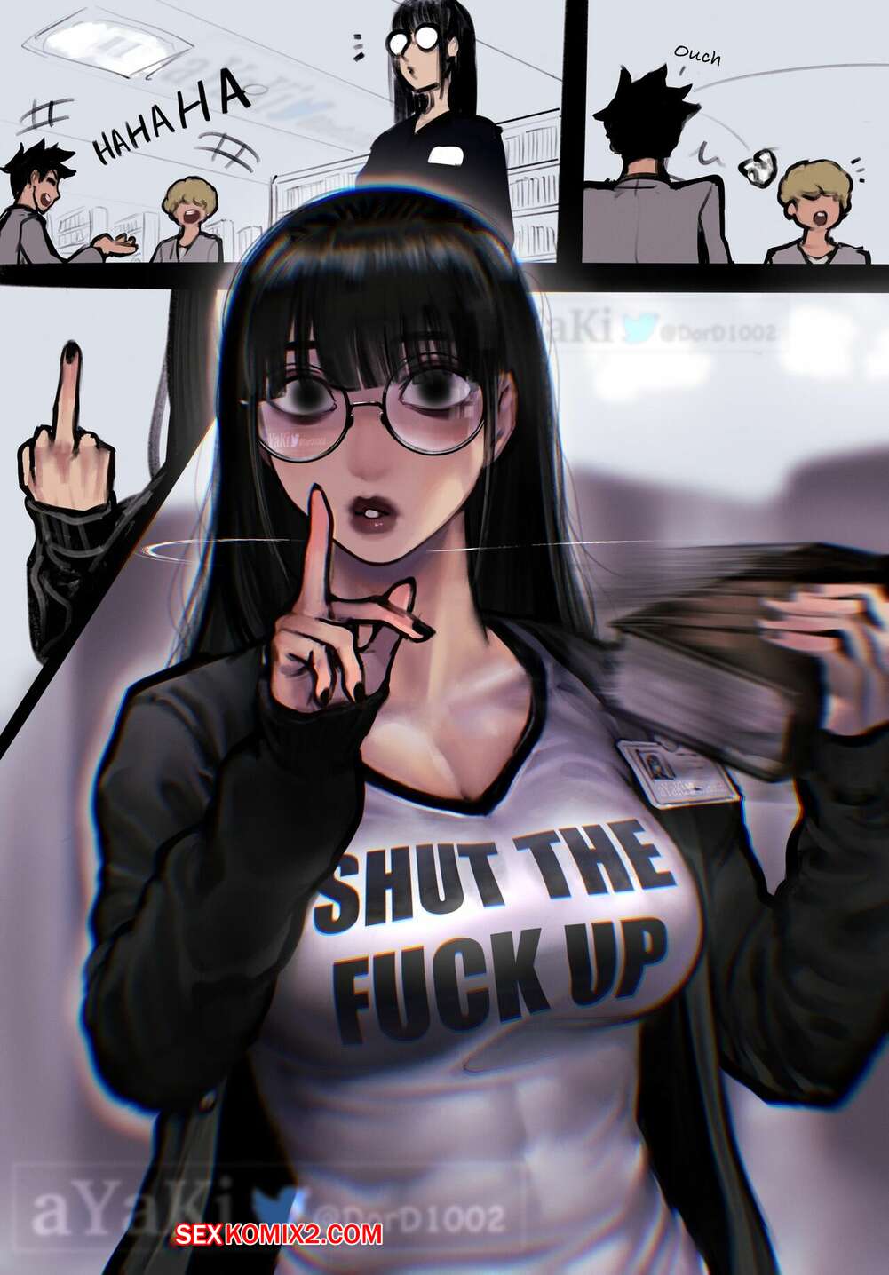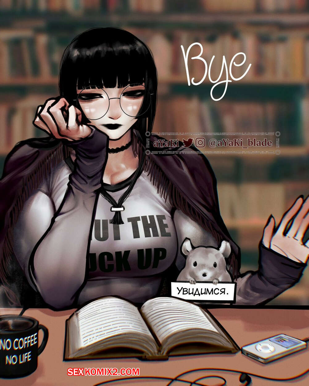 Порно комикс Тишина. Sylense. Goth Librarian. aYaKi Сексуальная брюнетка работает в библиотеке и любит соблюдение тишины. Девушка постоянно следит за окружющими людьми и просит их быть потише в случае чего.