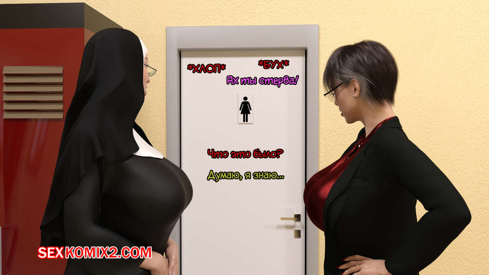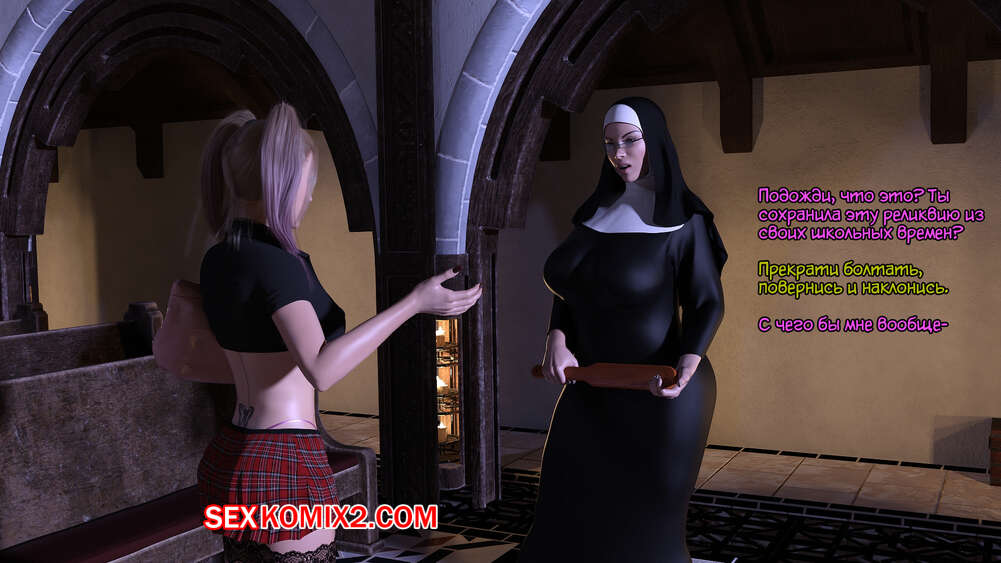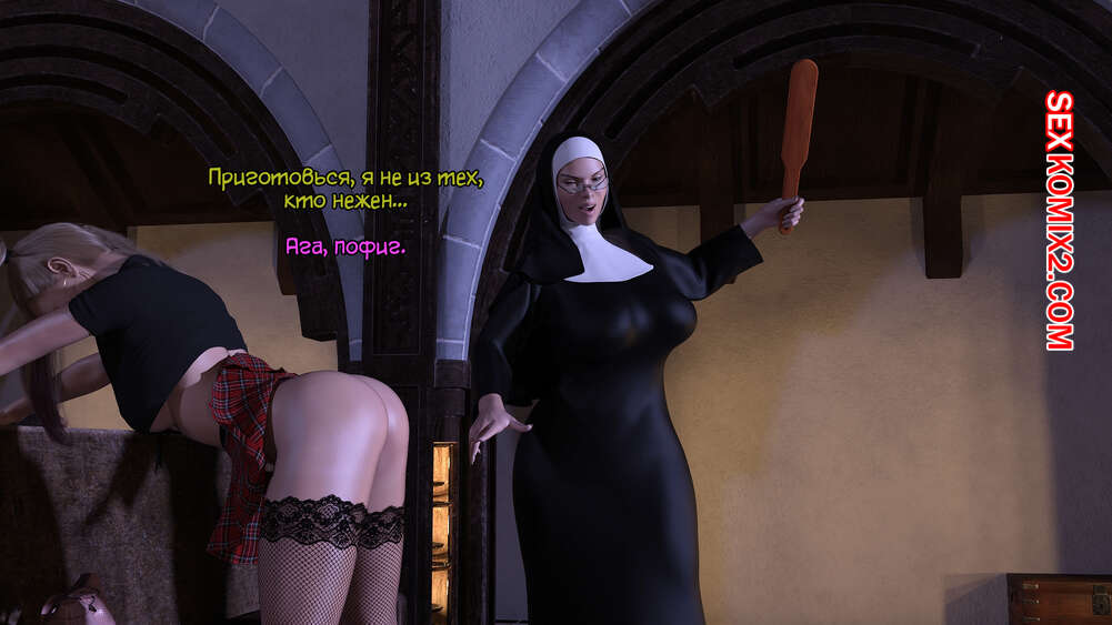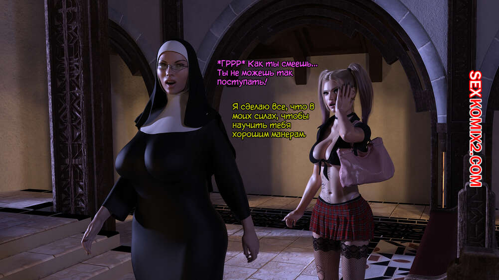 Порно комикс Хорошие манеры. Часть 1. Good Manners. Serge3dx Сисястая монашка решила наказать молодую сексуальной блондинку. Она раздела ее и отшлепал красотку по заднице, после чего дала ей отсосать свой большой хуй и кончил ей в ротик.