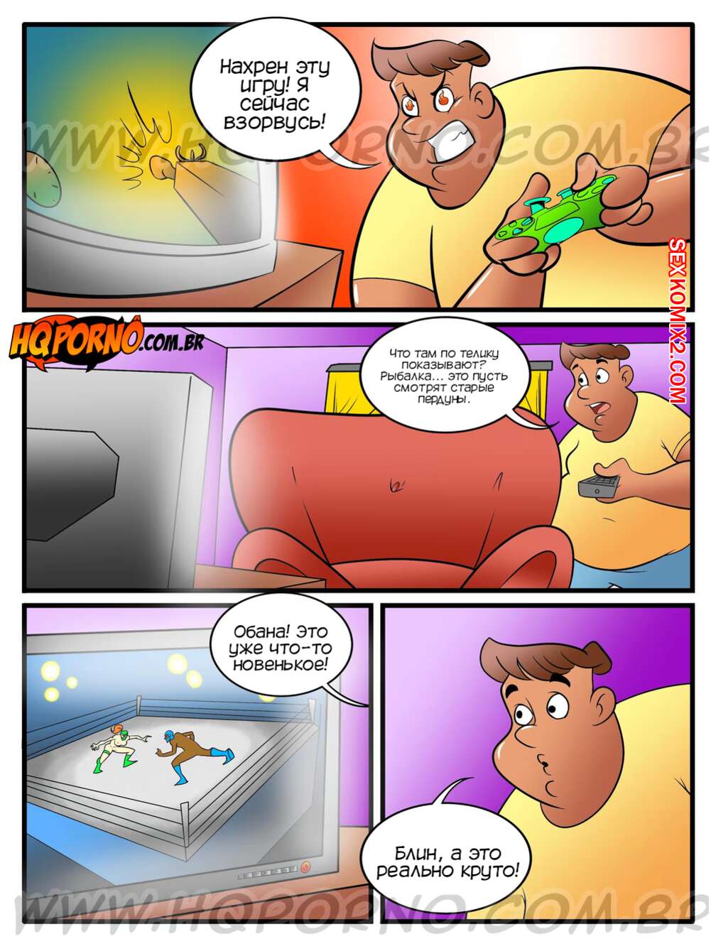 Порно комикс Грехи соседства. Часть 11. Озорная драка. Pecados da vizinhanca. HQporno Гордо увидел интересное шоу по телевизору и отправил заявку на участие. Парень сражался на ринге с девушкой и одолел ее, после чего хорошенько выебал ее пизденку.