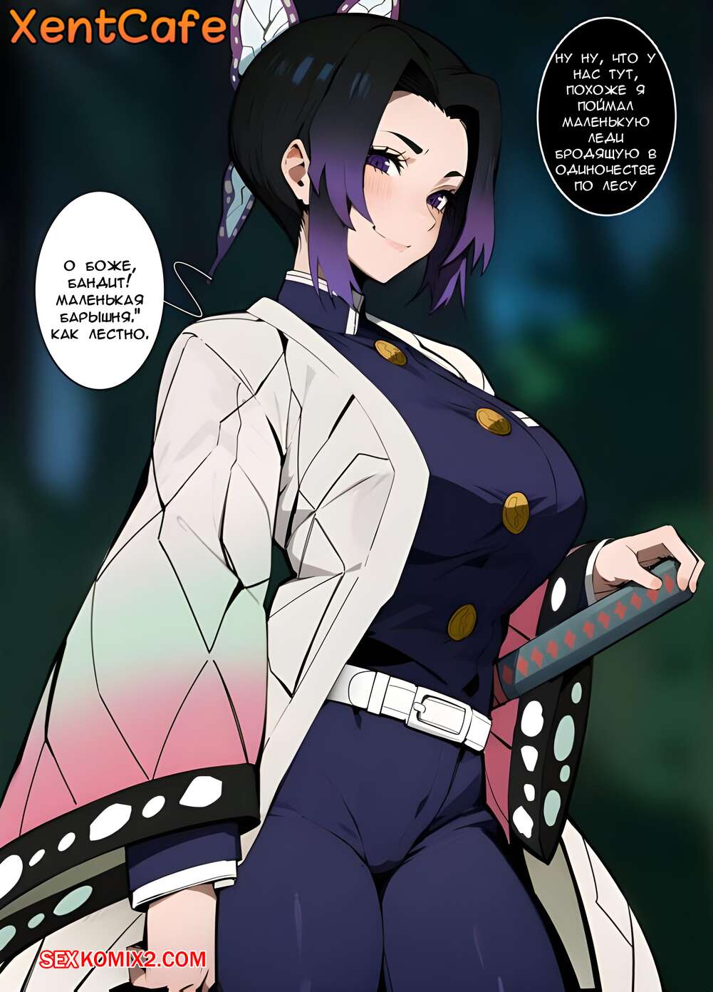 Порно комикс Genshin Impact. Синобу Сексуальная брюнетка встретилась в лесу с темнокожим парнем и они решили повеселиться. Красотка разделась и возбудила парня своим шикарным телом, после чего он ее хорошенько выебал.