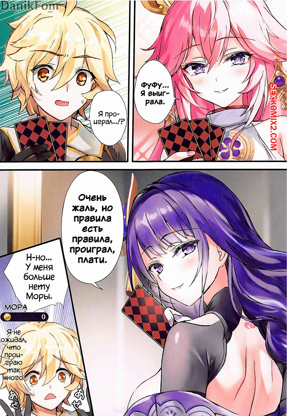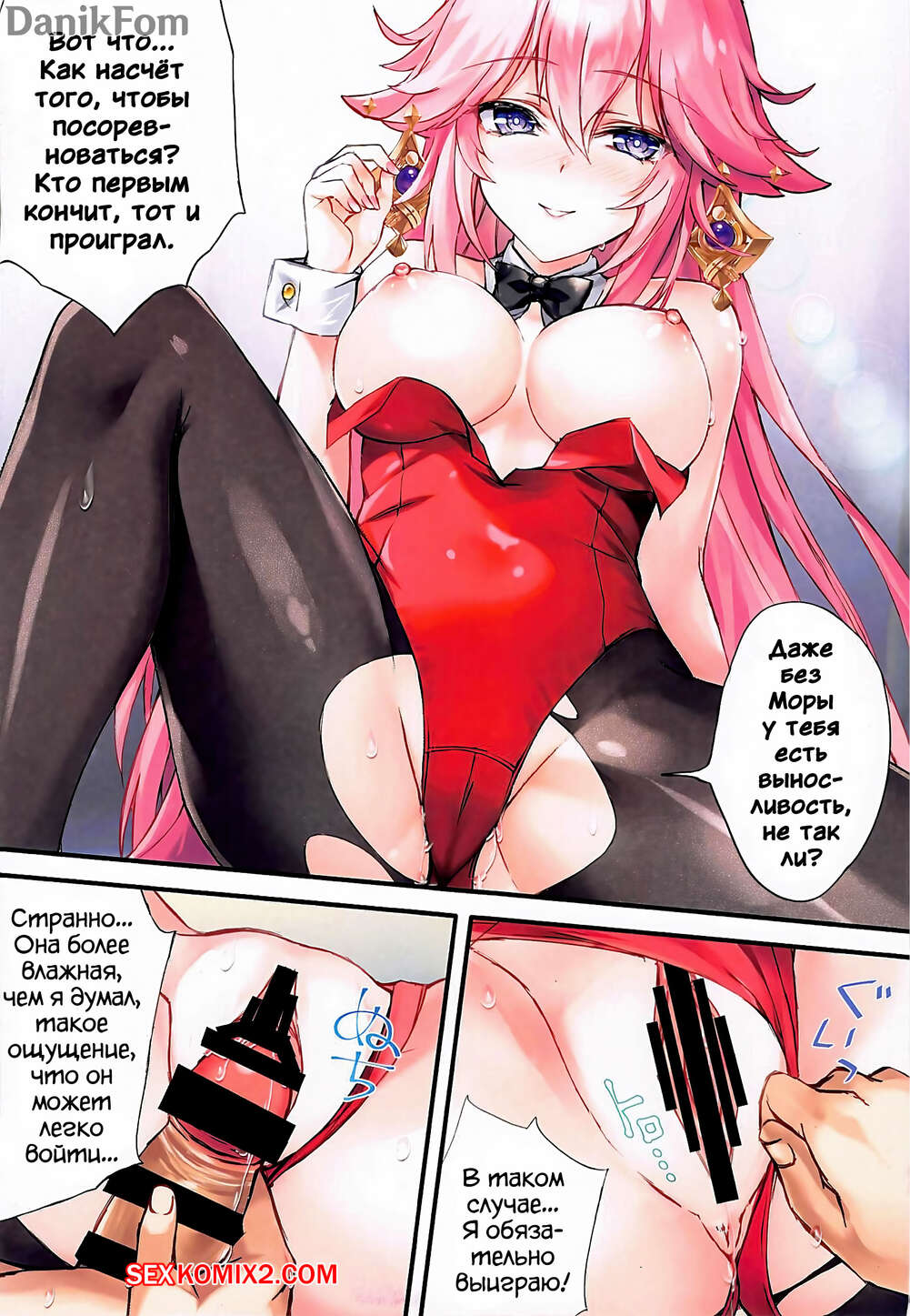 Порно комикс Genshin Impact. Игра на Мору кролик и наказание. Akaneiro Две горячие подруги были очень возбуждены и хотели трахаться. Они разделись перед своим дружком и возбудили его своими шикарным телами, после чего дали ему себя выебать.