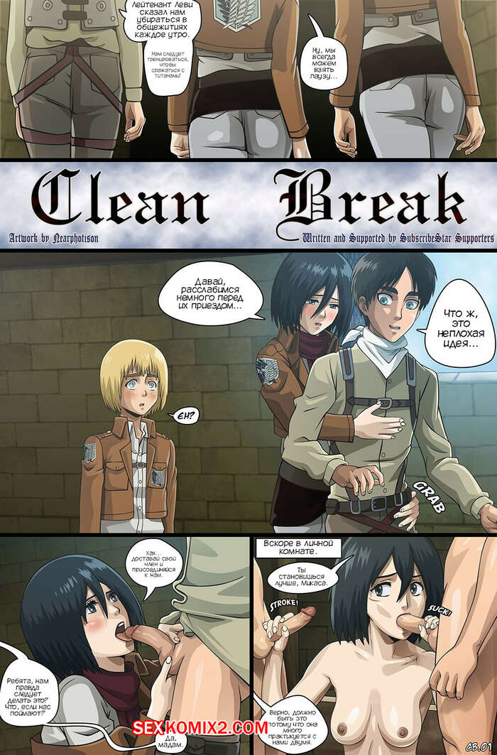 Порно комикс Атака титанов. Перерыв в уборке. Clean Break. Nearphotison Сексуальная брюнетка решила отдохнуть от уборки и повеселиться со своими дружками. Красотка разделась и отсосала их большие хуи, после чего дала им себя хорошенько выебать.