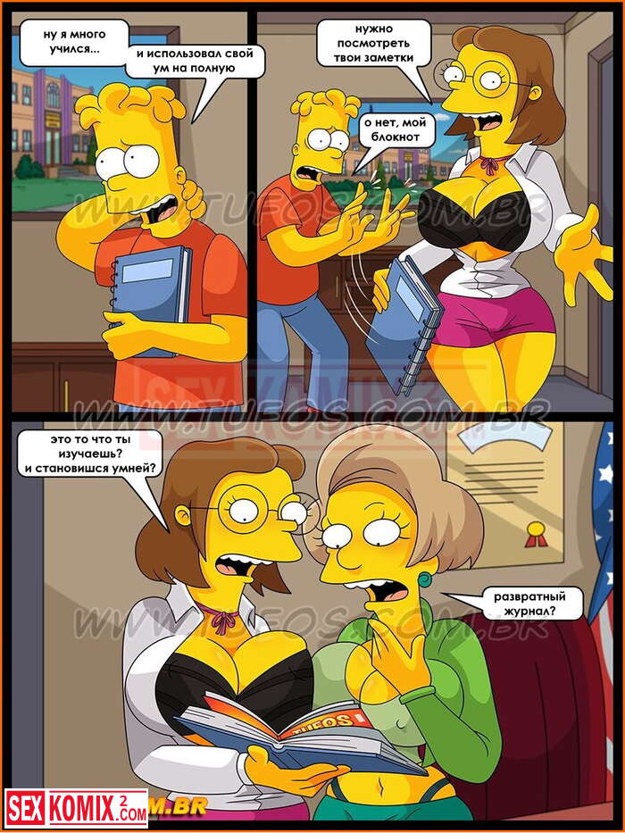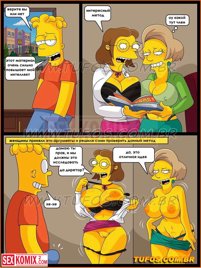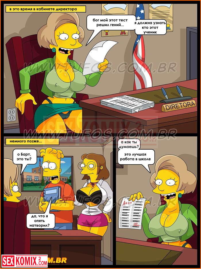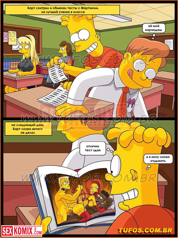 Порно комикс Симпсоны. Часть 23. Барт смотреть порно журнал прямо на уроки, его вызвали в кабинет директора и показали взрослый секс.