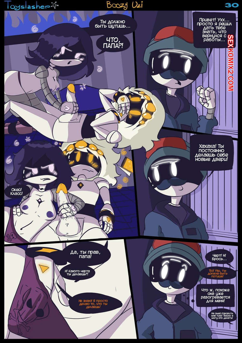 Порно комикс Бузи Узи. Boozy Uzi. Toyslasher Молодая брюнетка осталась наедине со своим другом роботом, пока его девушка отправилась на поиски следов. Они стали дурачиться и парня встал хуй, что очень возбудило девушку. Она разделась и отсосала хуй друга, после чего дала ему себя выебать.