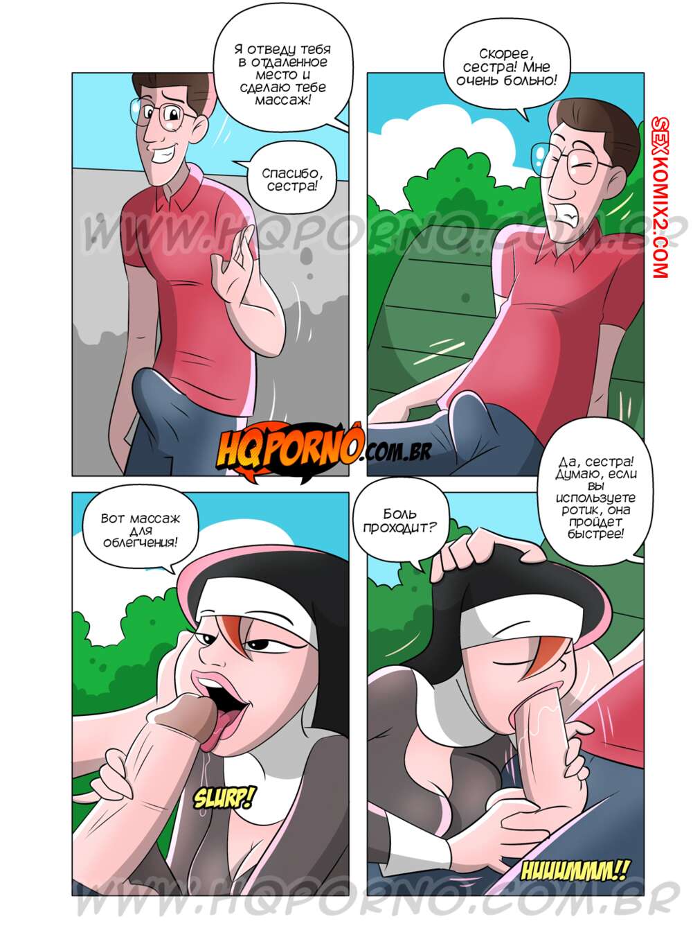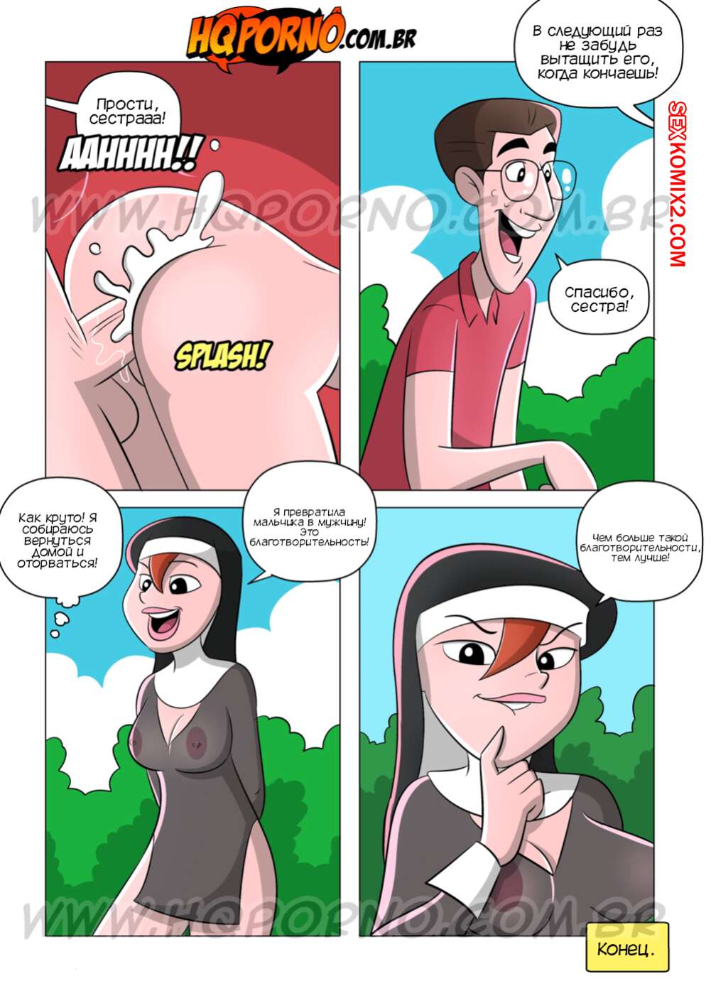 Порно комикс Монахиня. Часть 1. Девственник. A freira. O virgem. HQPorno Юная сексуальная монашка отправилась в город, чтобы помогать людям. Она наткнулась на парня девственника и дала ему себя выебать, чтобы превратить его в мужчину.