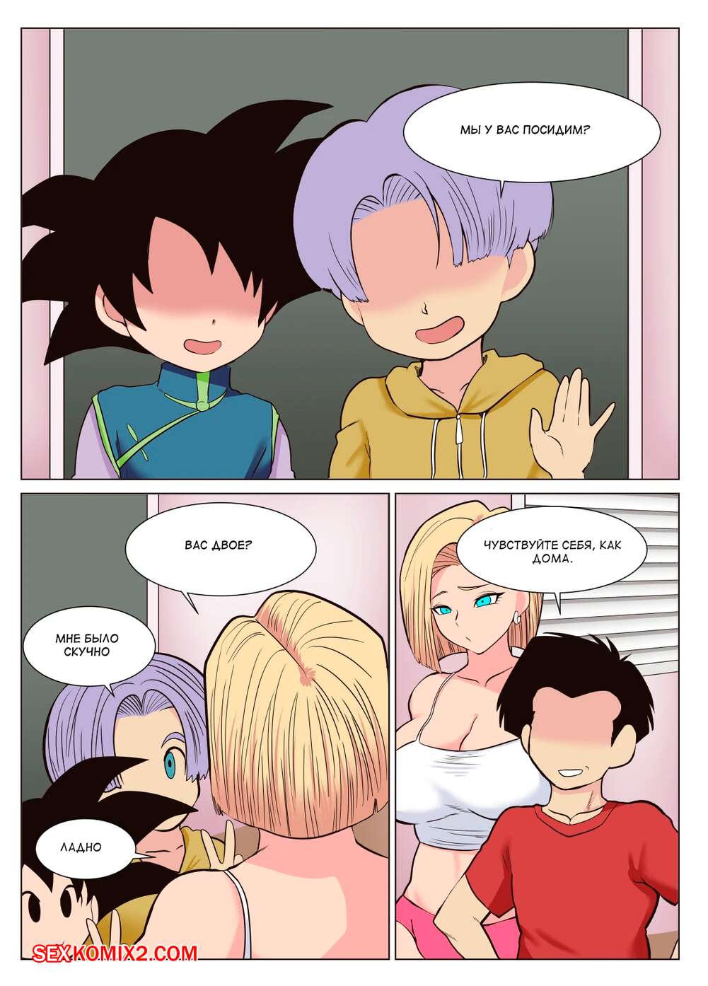 Порно комикс Dragon Ball. Транкс и Готен. T and G. Donaora889. Андроид 18 присматривала за Транксом и Готеном. Парни решили воспользовать телом красотки и дали ей отсосать свои большие хуи, после чего хорошенько ее выебали во все дырочки.