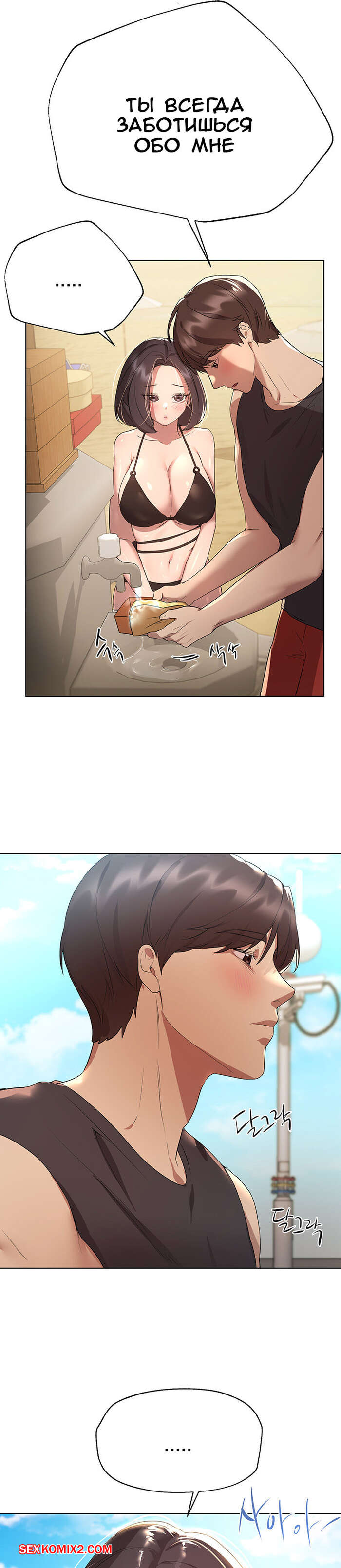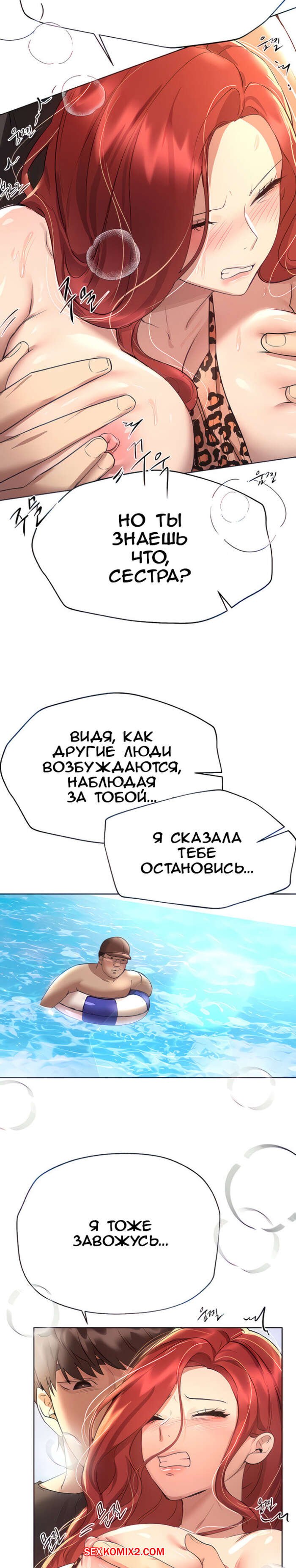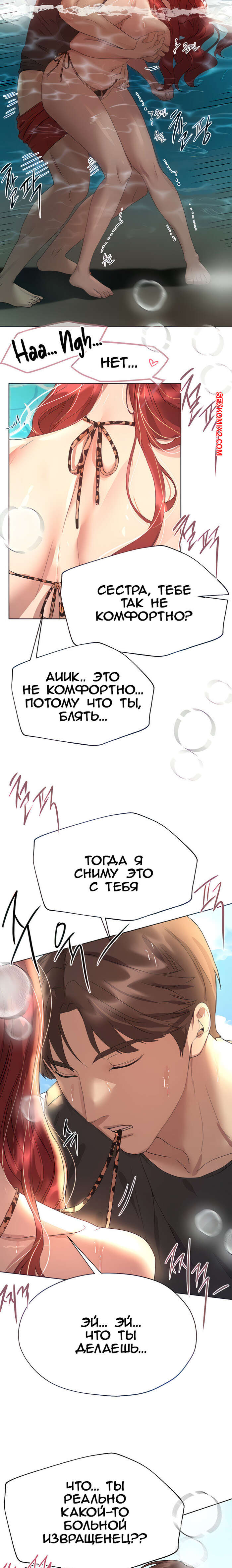 Порно комикс Подруги сестры. Часть 60. Sisters friends Парень купался в бассейне с сексуальной брюнетке и очень возбудился. Он стал приставать к девушку, лаская ее, после чего девушка отдала ему и дала себя хорошенько выебать в воде.