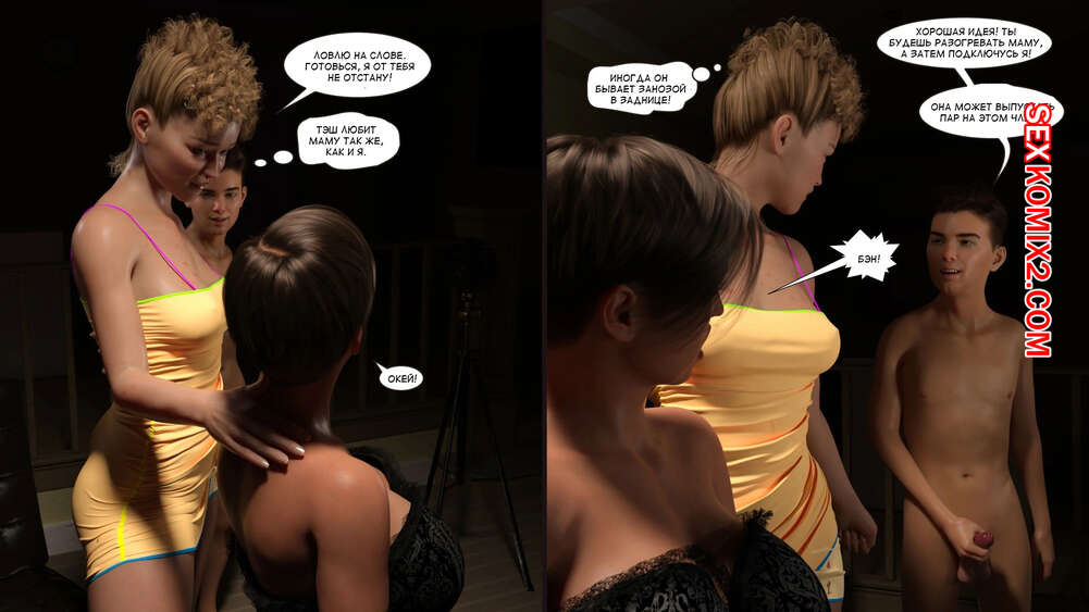 Порно комикс Как стать порнозвездой. Часть 11. How to become a pornstar. Nethoc Молодой парень установил камеру, чтобы снять групповушку со своей мамой и тетей. Мамочка отодвинула трусики и дала сыночку вставить в нее свой большой хуй, устраивая невероятное шоу.