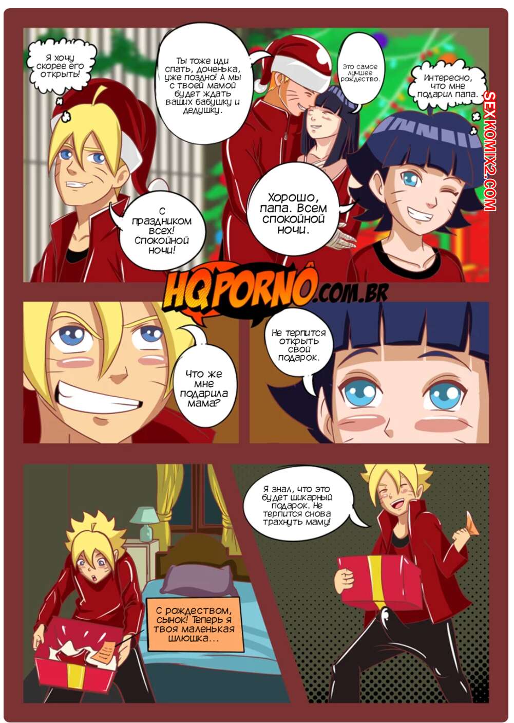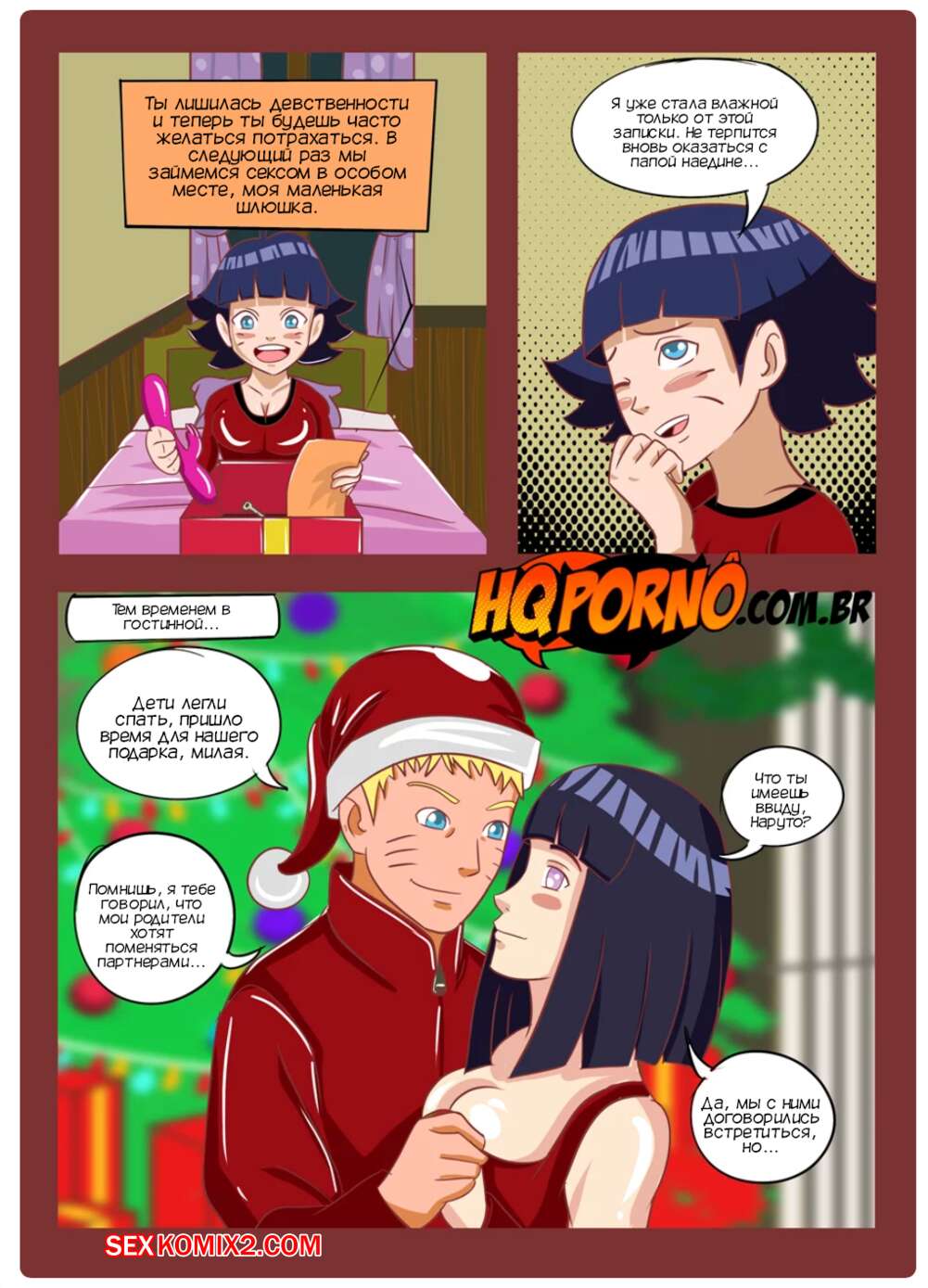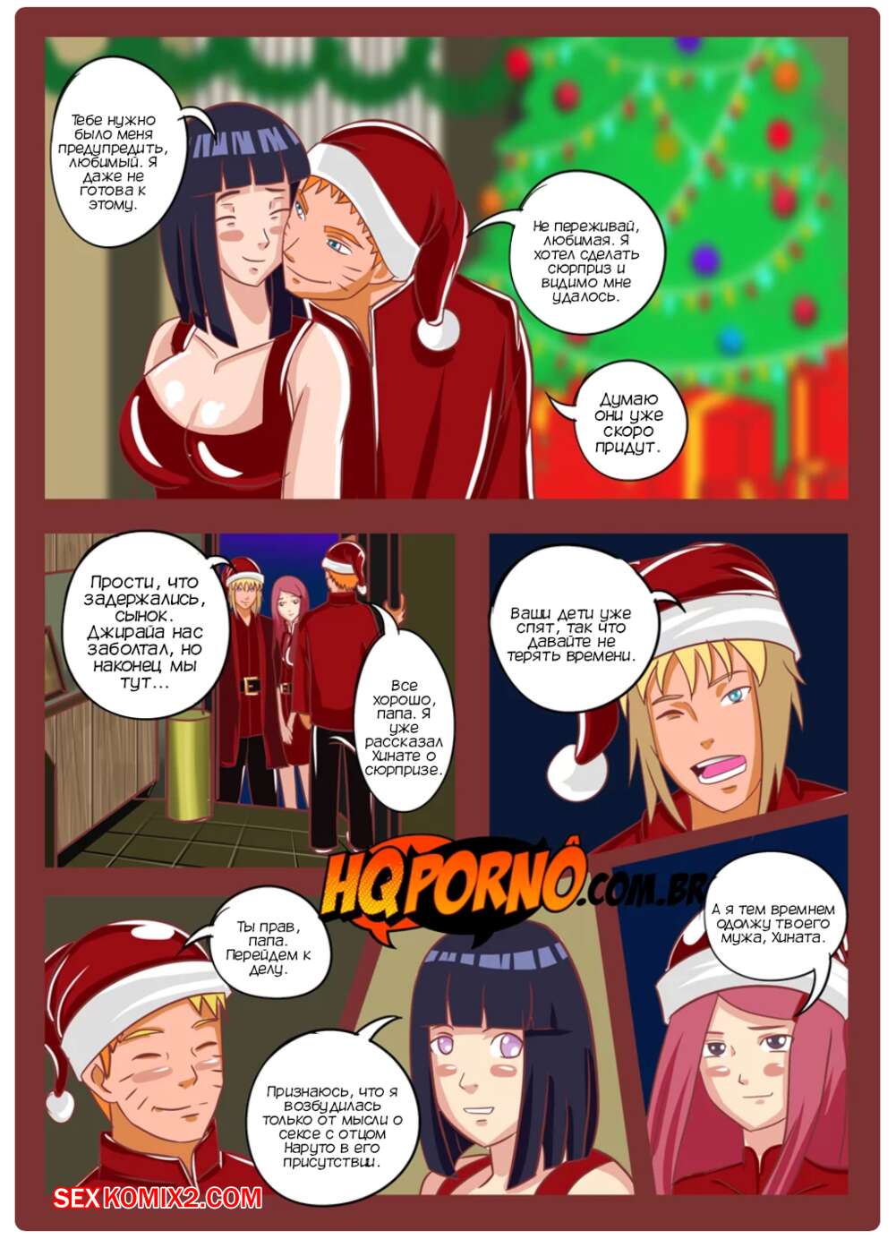 Порно комикс Наруто. Рождество семьи Узумаки. Часть 2. Natal da família Uzumaki. HQPorno Наруто с Хинатой отправили детей спать и теперь ждут встречи с родителями Наруто. Две пары обменялись партнерами и занялись страстной еблей, получив огромное удовольствие.
