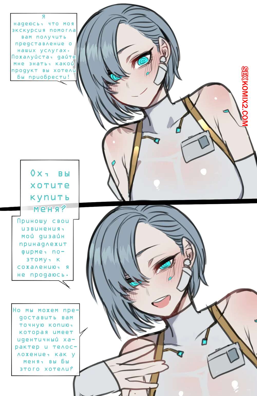 Порно комикс Добро пожаловать в Love AI. ratatatat74 Парень был очень возбужден и хотел трахаться. Он активировал девушку дроида и она отсосала его большой хуй, после чего дала ему хорошенько выебать свою пизденку и кончить в нее.
