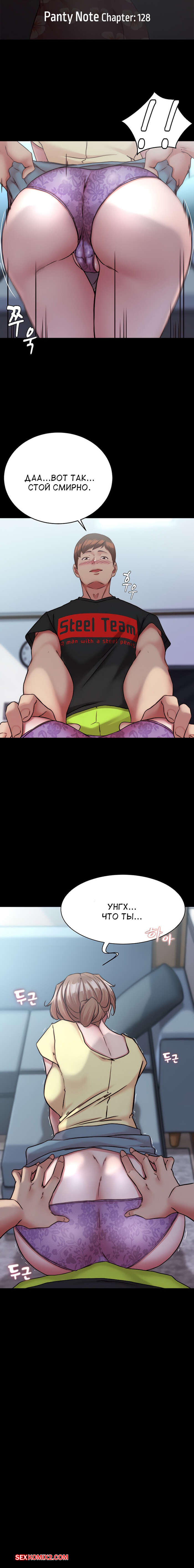 Порно комикс Тетрадь по трусикам. Часть 128. Panty Note Парень стал приставать к сексуальной милфе брюнетке. Он прижал ее к стене и стянул с нее трусики, после чего достал свой большой хуй, чтобы хорошенько выебать красотку.