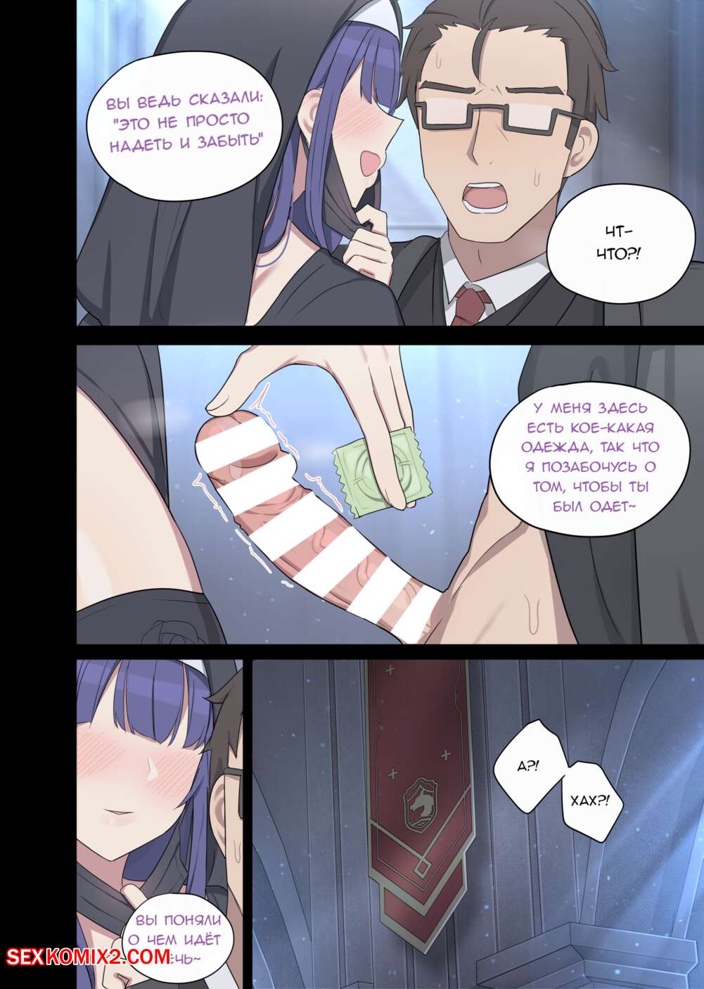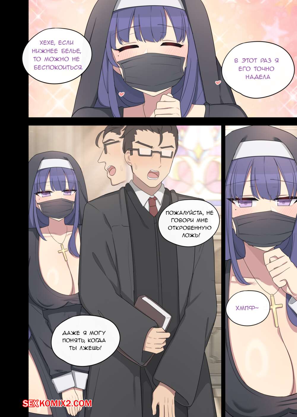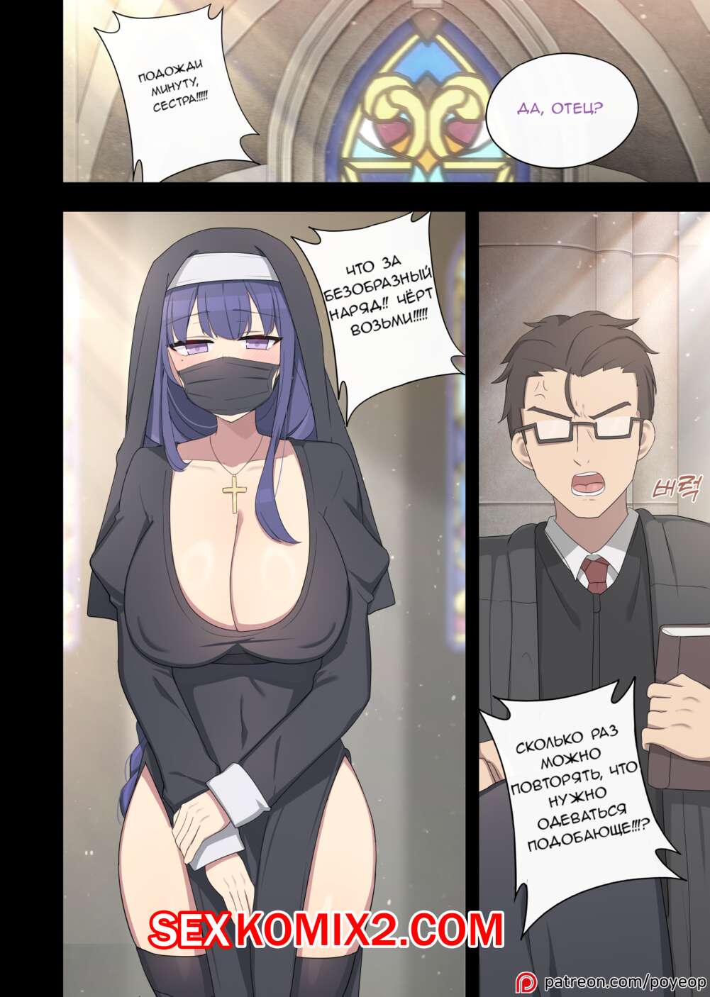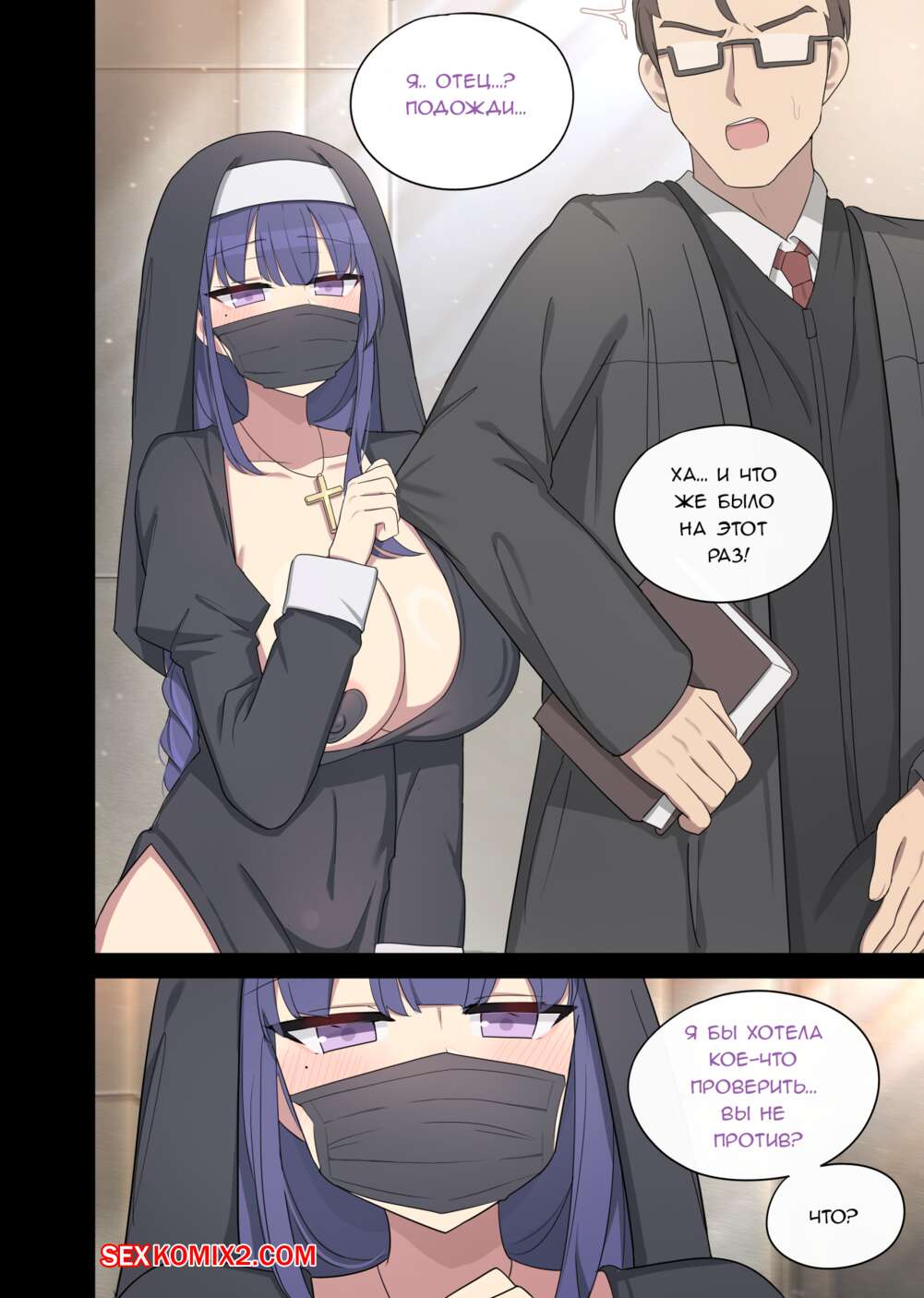 Порно комикс Genshin Impact. Райден. Raiden. Poyeop Сексуальная брюнетка монашка была очень возбуждена и решила повеселиться со священником. Она разделась и отсосала его член, после чего раздвинула ножки и дала мужчине себя выебать.