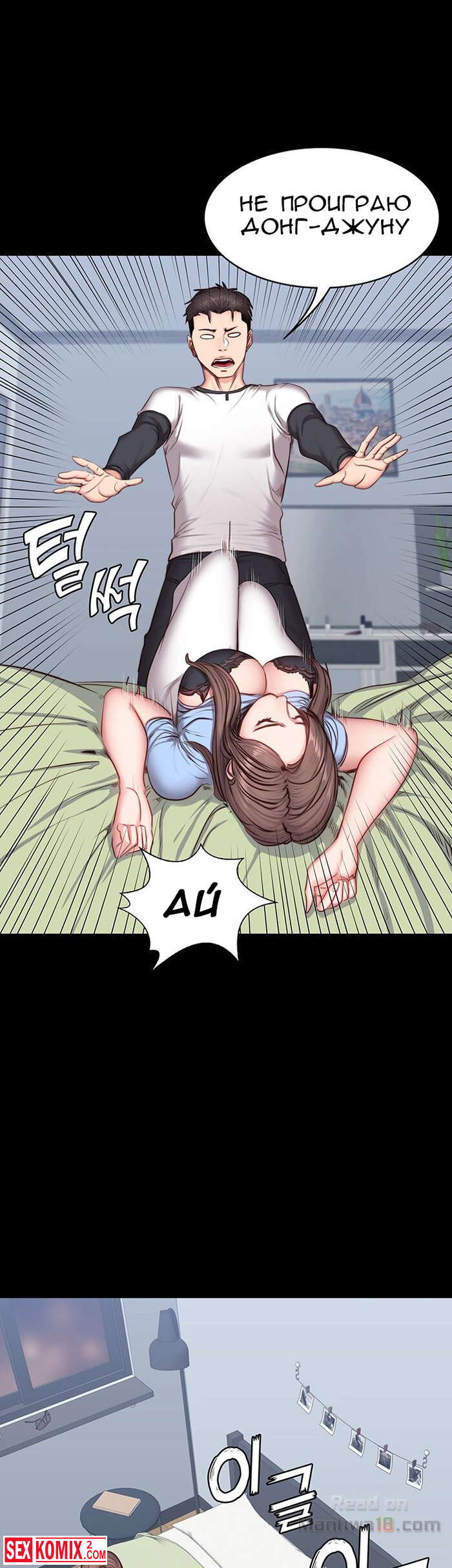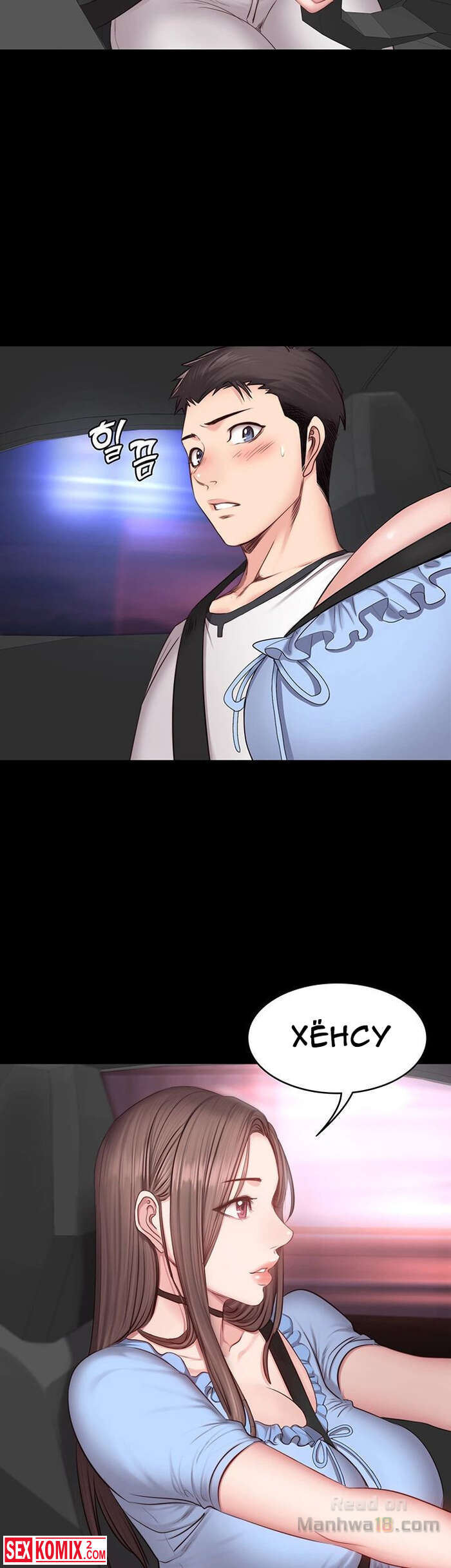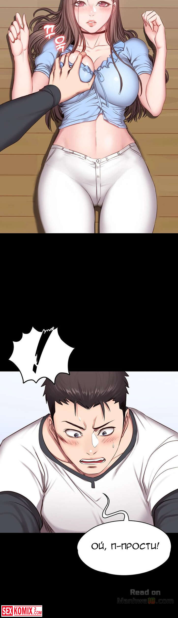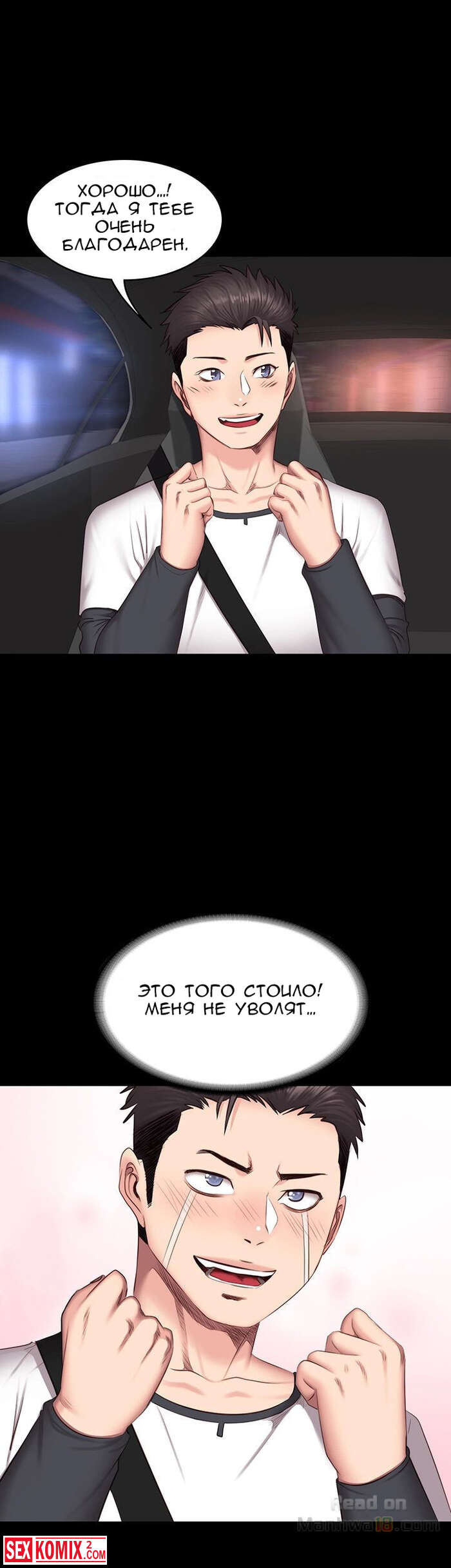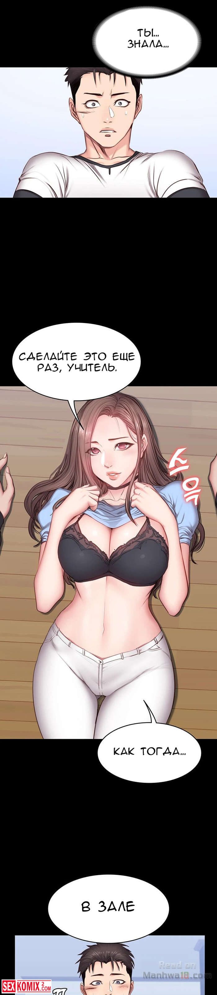 Порно комикс Фитнес. Часть 14 и 15. Девушка подвезла парня и по дороге попросила его помочь ей по дому, на самом деле это был предлог чтобы затащить его к себе домой.
